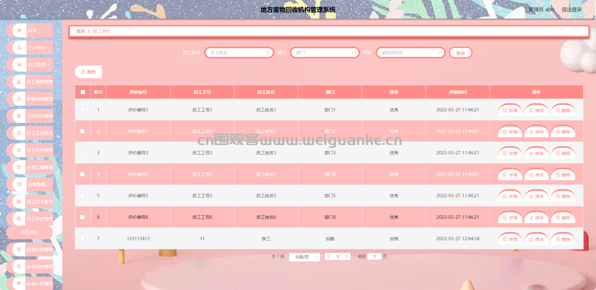 员工评价管理:360°绩效考核流程化,评分自动汇总,优秀员工一目了然。
