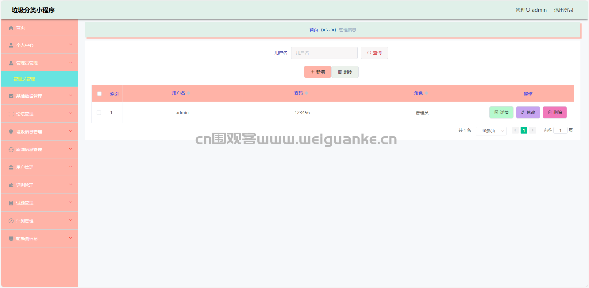 管理员 账户:admin 密码:123456
