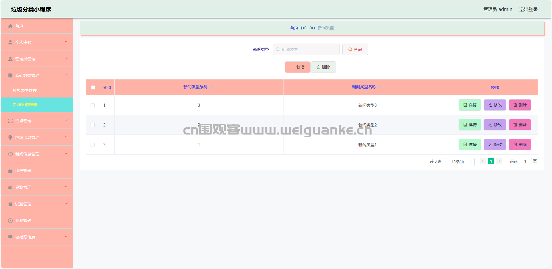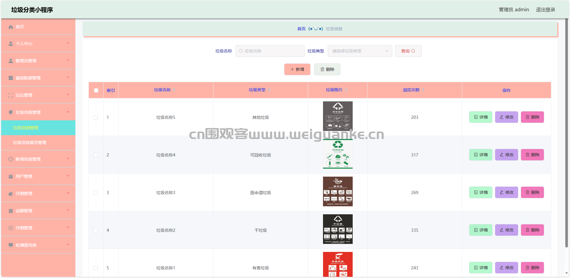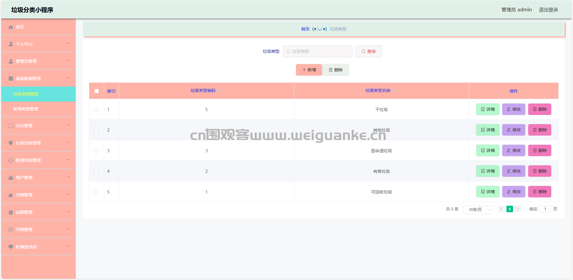4.垃圾类型管理:查看、添加、编辑、删除垃圾类型信息