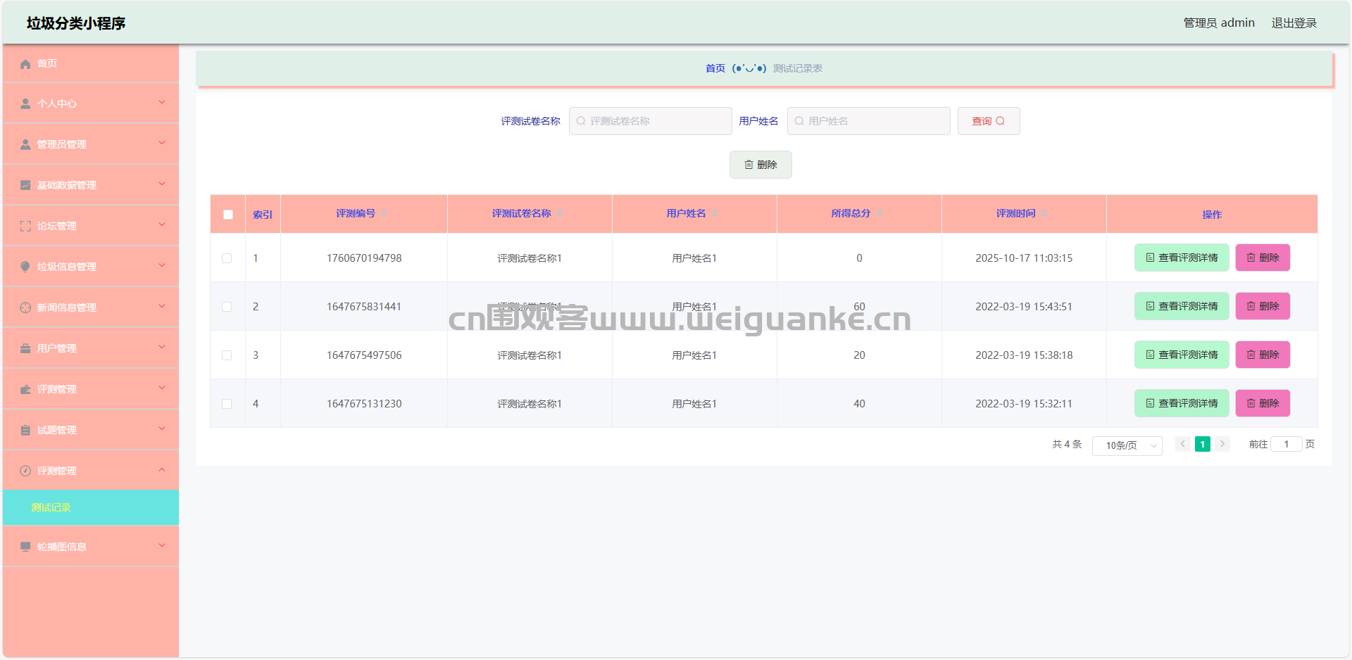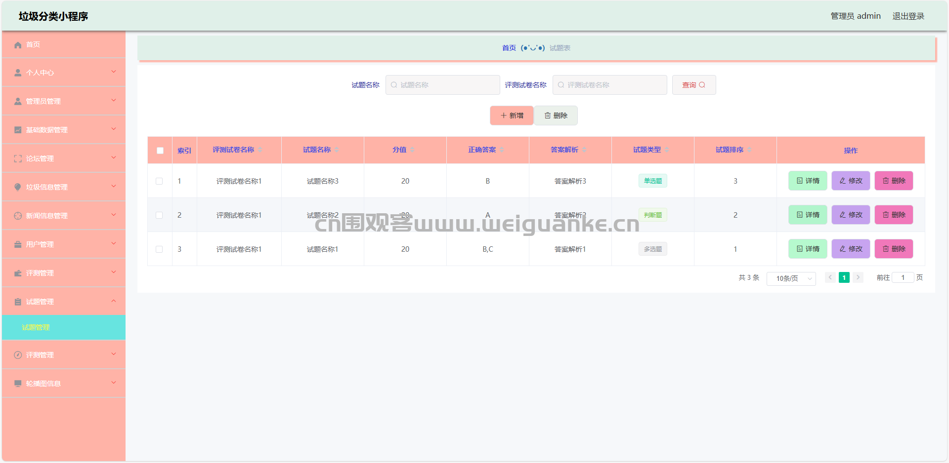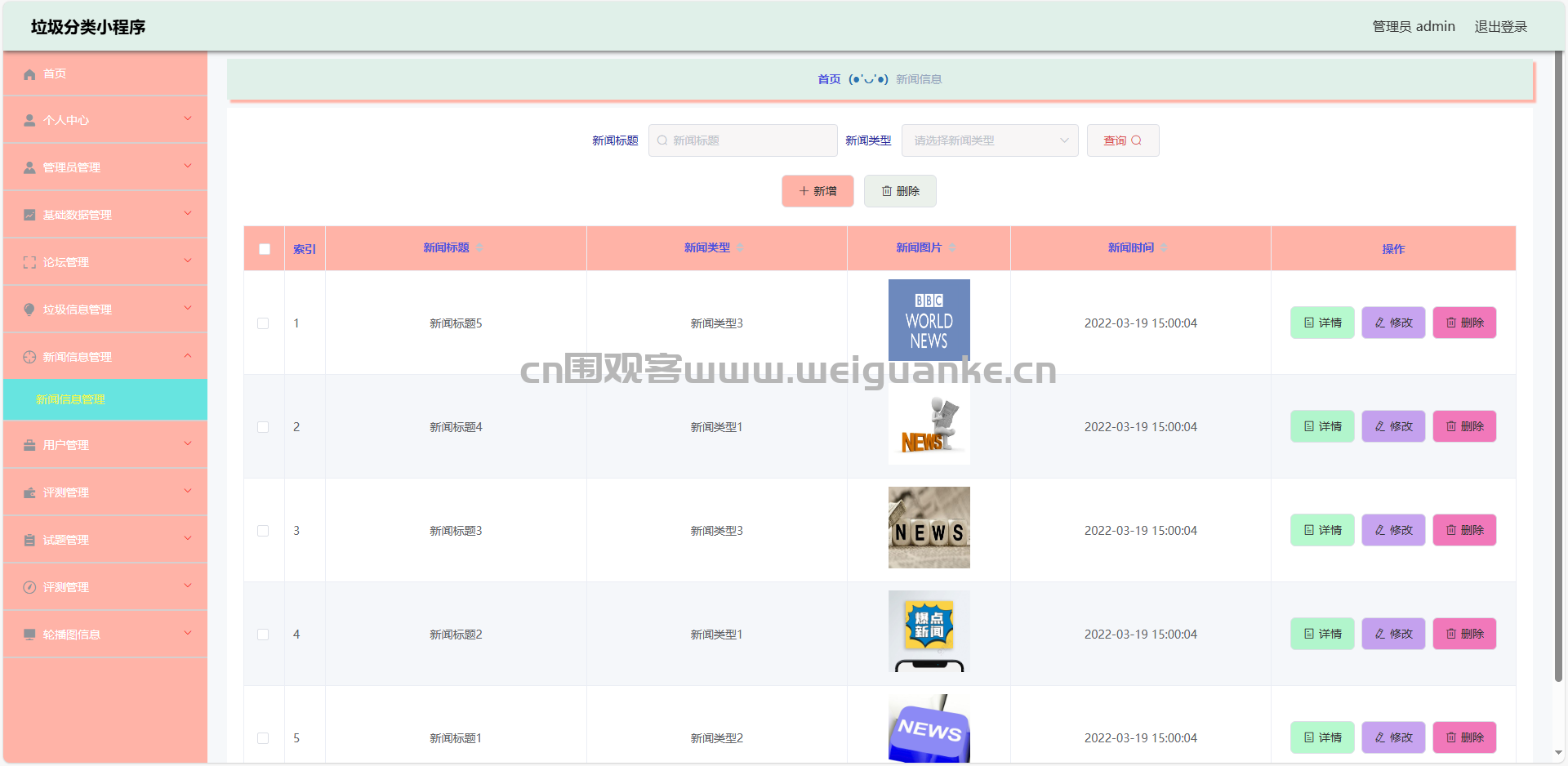 4.垃圾类型管理:查看、添加、编辑、删除垃圾类型信息