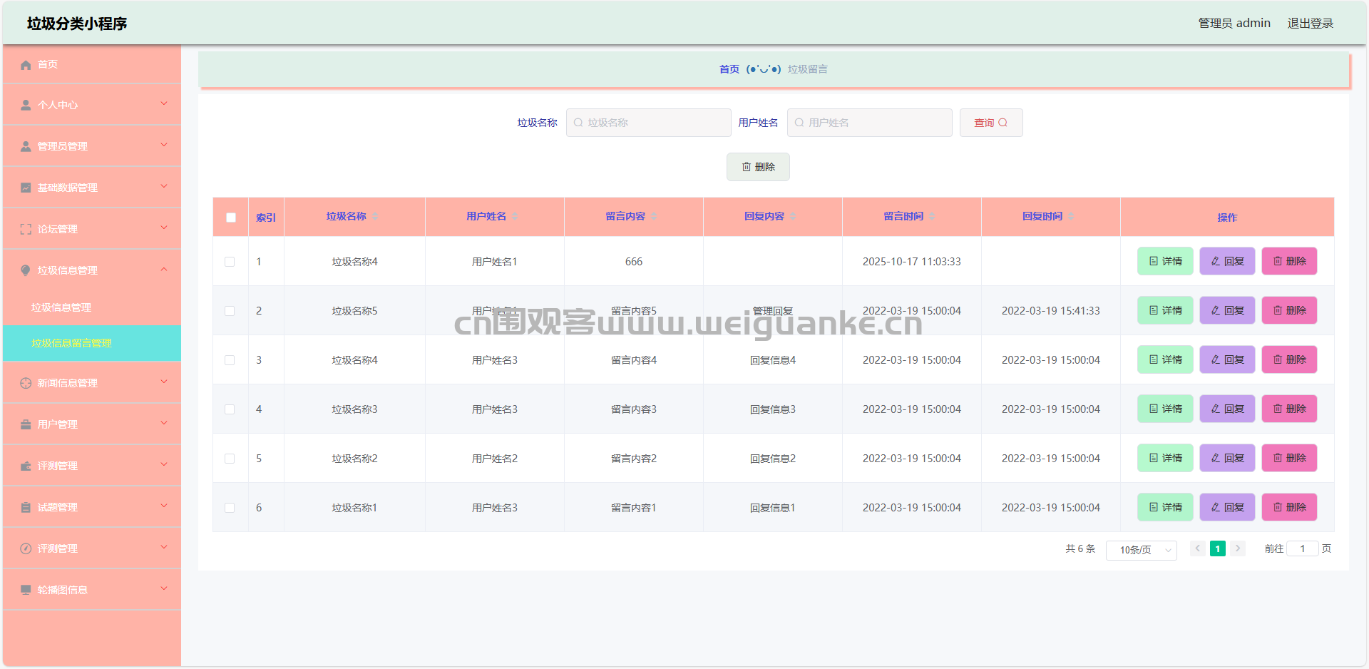 8.垃圾留言管理:查看、回复、删除留言信息