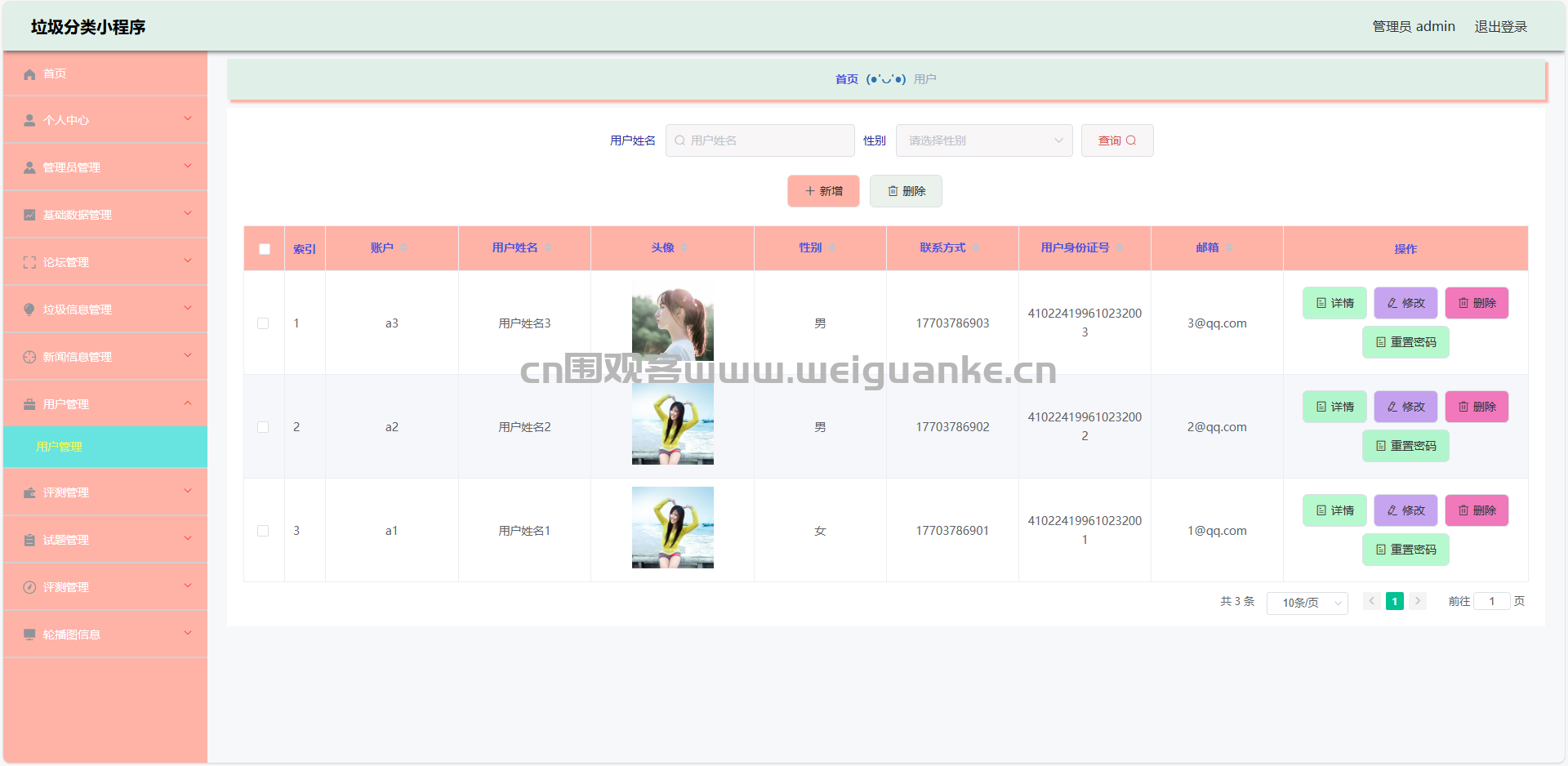 3.用户管理:查看、添加、编辑、审核、删除用户信息