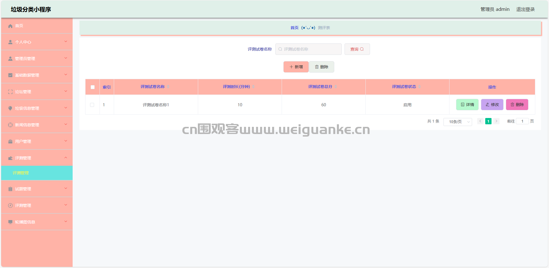 10.测评管理:查看、添加、编辑、删除测评信息