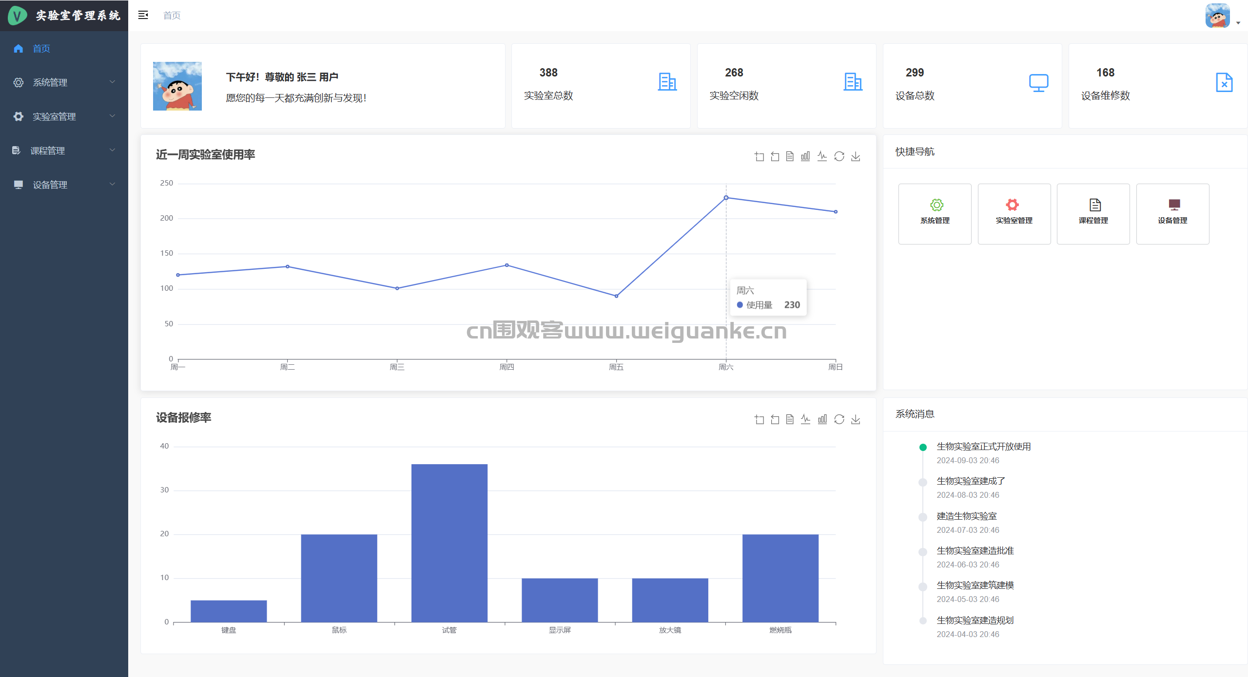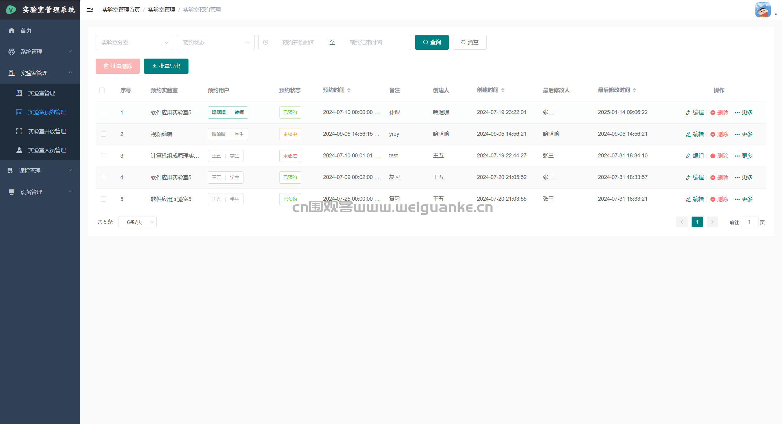 – 实验室预约:自助预约开放时段,系统实时显示剩余名额,支持预约取消。