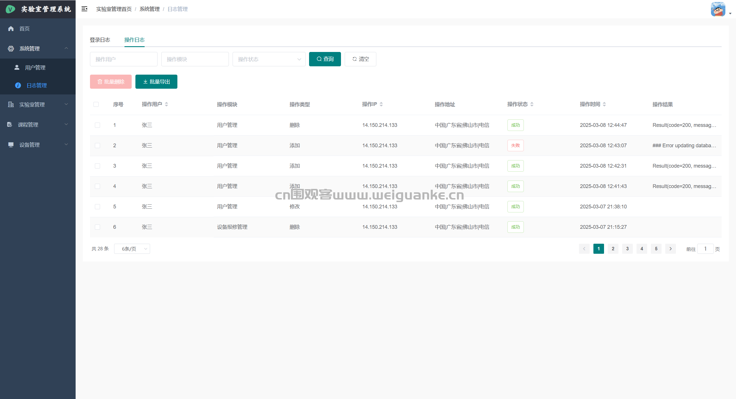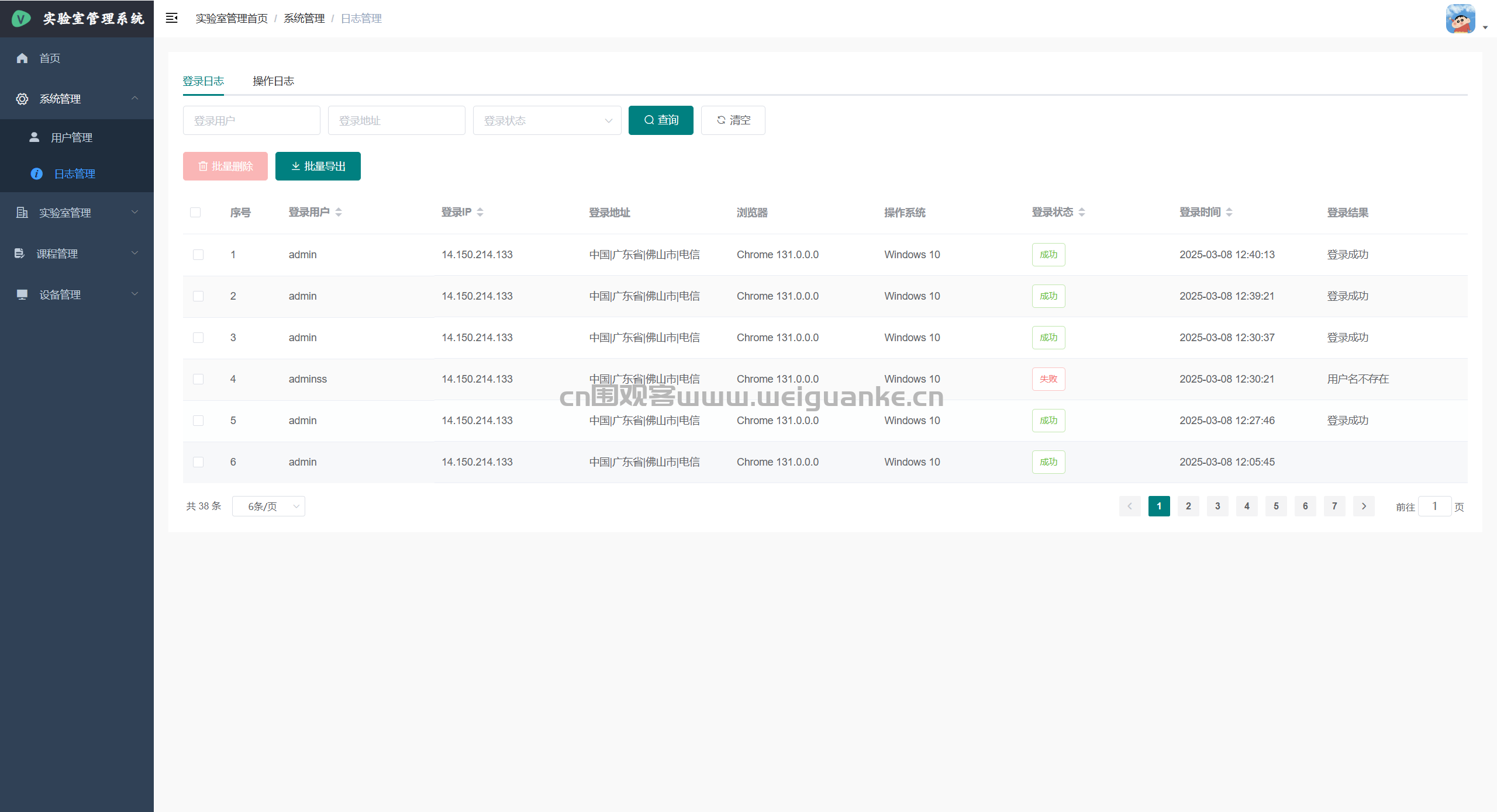 – 日志管理:查看/检索登录日志、操作日志、异常日志,支持一键归档与清理。