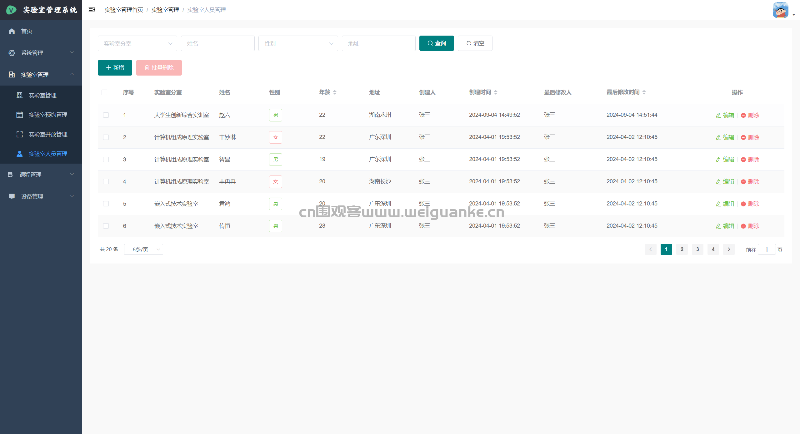 – 实验室人员管理:上课期间可查看、导出实际到课学生名单,标记缺勤。