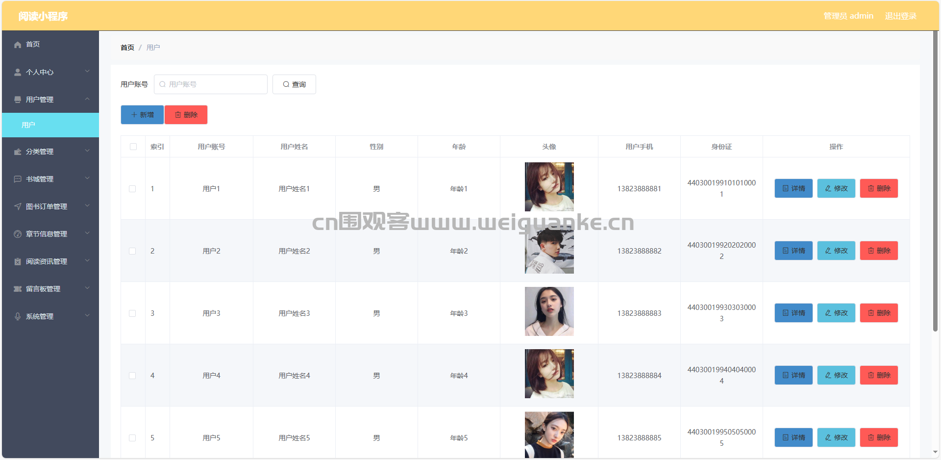 2.用户管理:查看、添加、编辑、删除用户信息