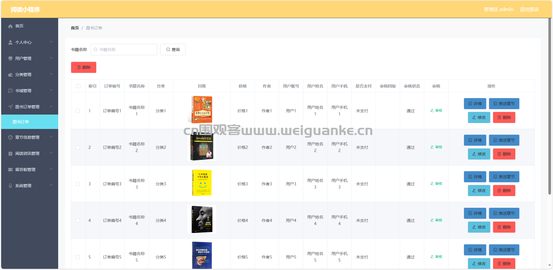 6.订单管理:查看、审核、编辑、推送章节、删除订单信息