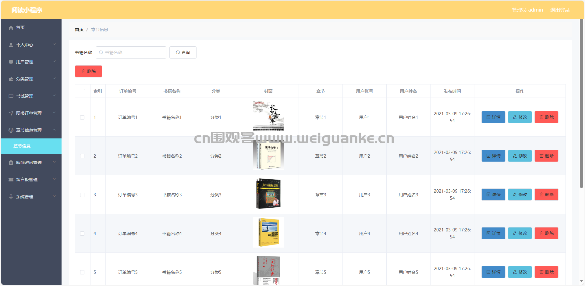 7.章节管理管理:查看、编辑、删除章节信息