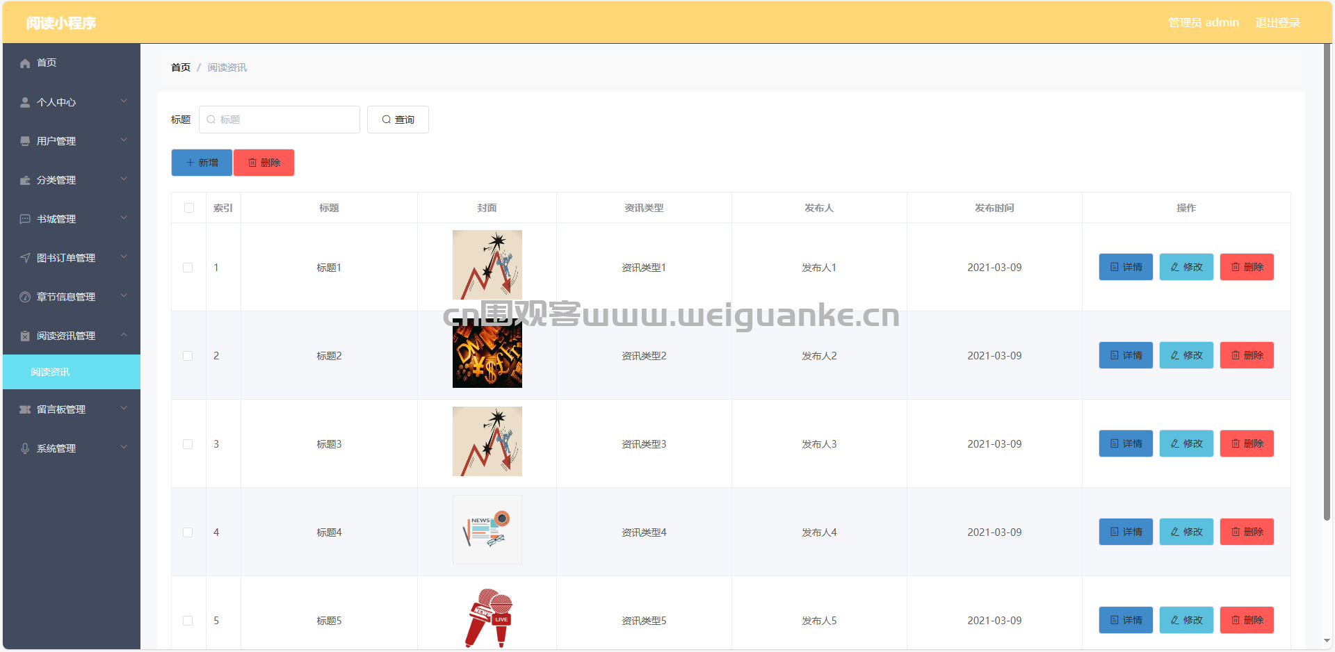 9.资讯管理:查看、添加、编辑、删除公告信息