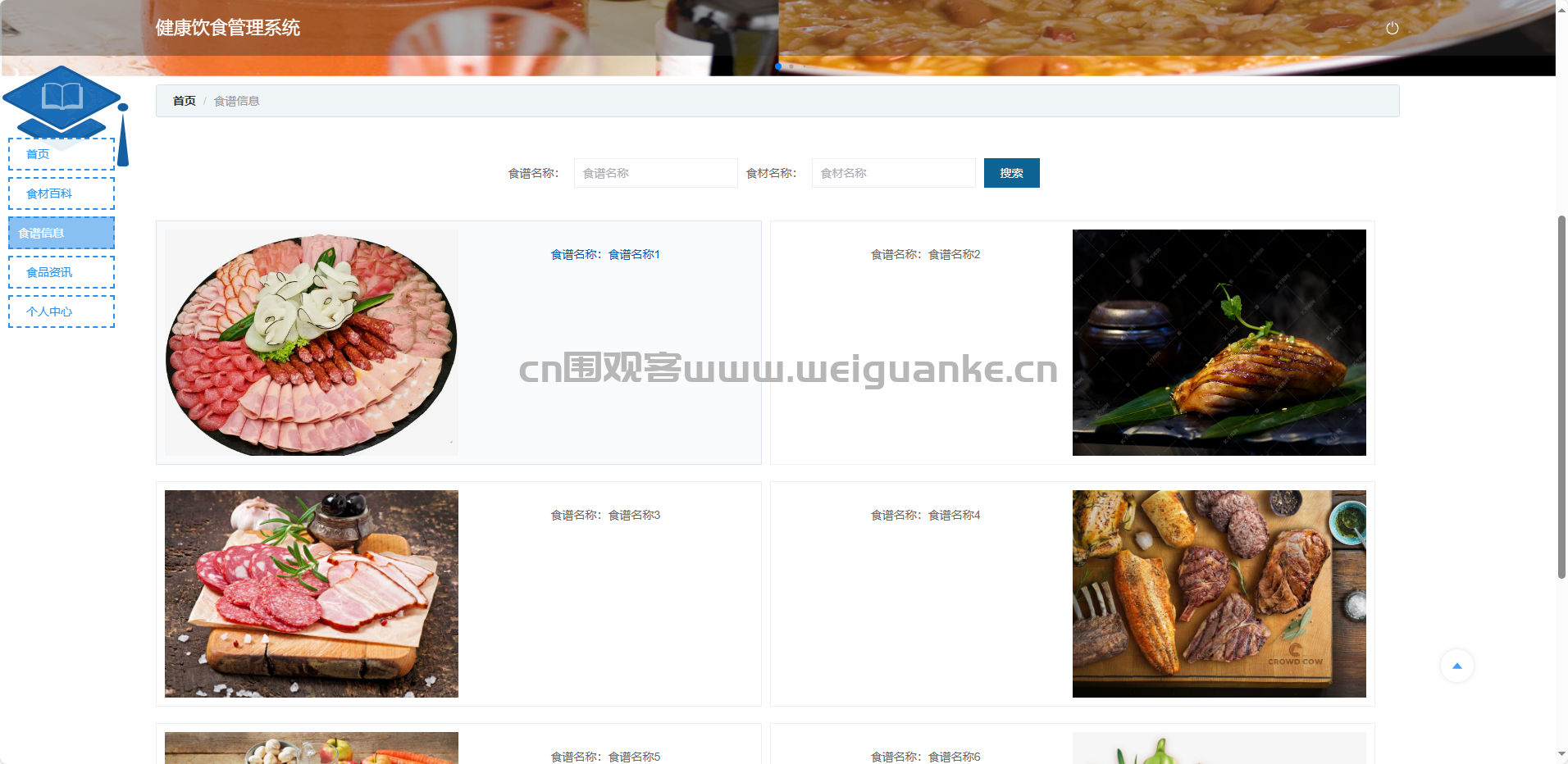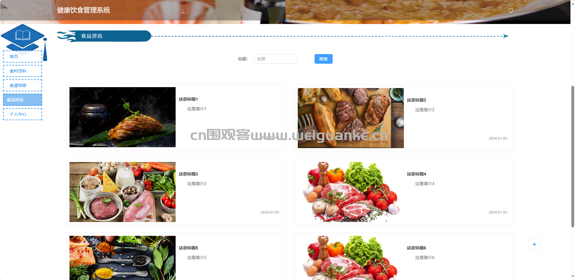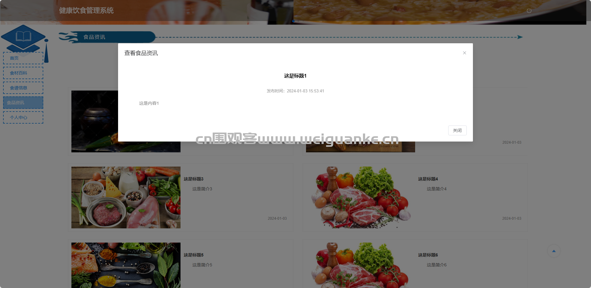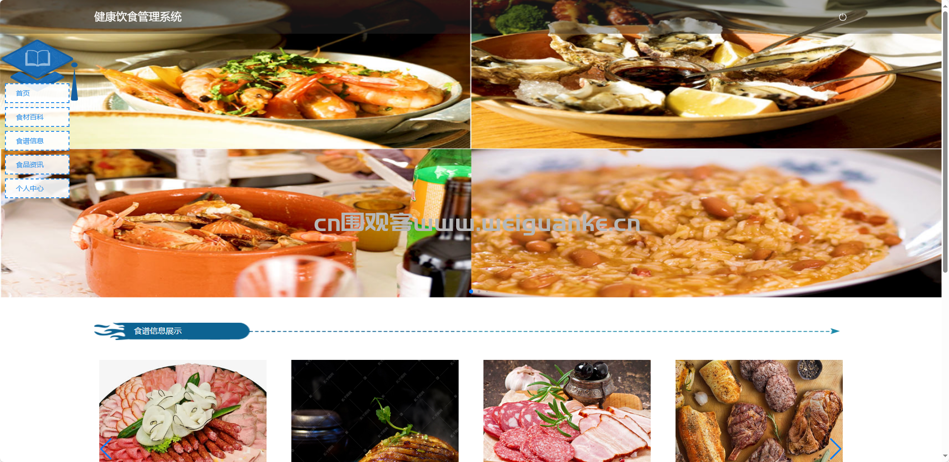 SpringBoot+Vue“健康饮食管理系统”:前台查食材、搜食谱、看资讯,后台一键管菜、管文、管图、管人,让健康饮食“查得到、做得出、吃得好”。
