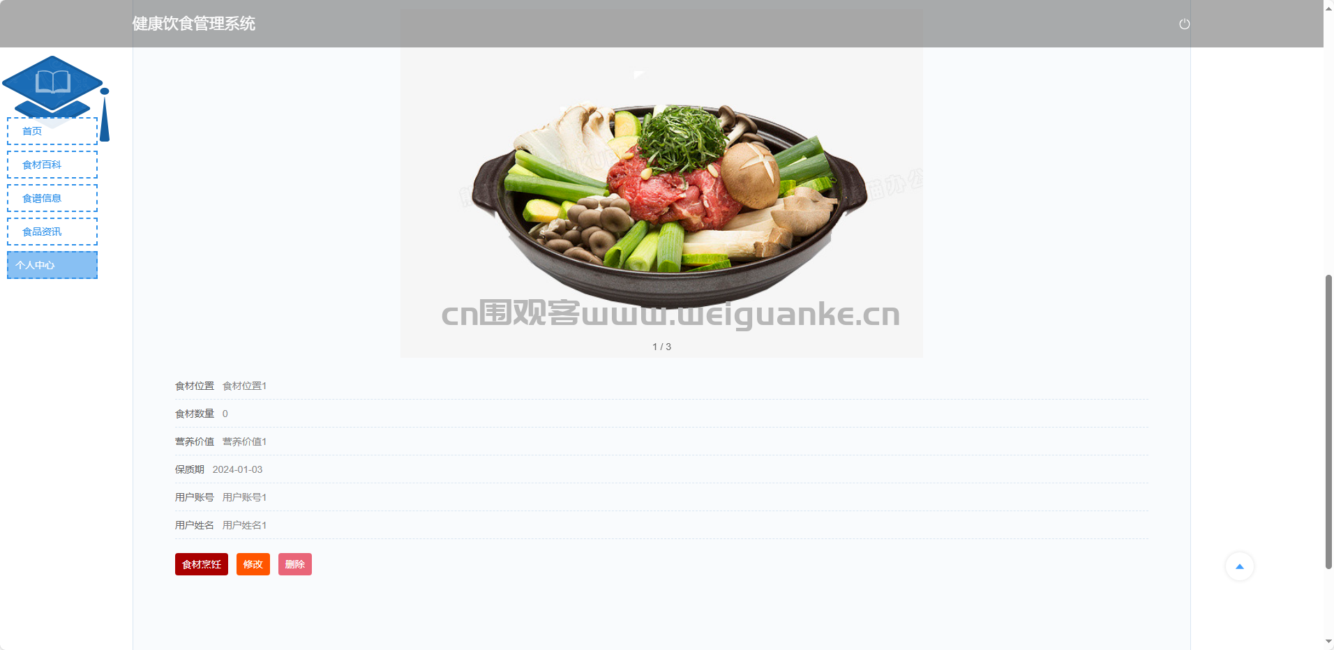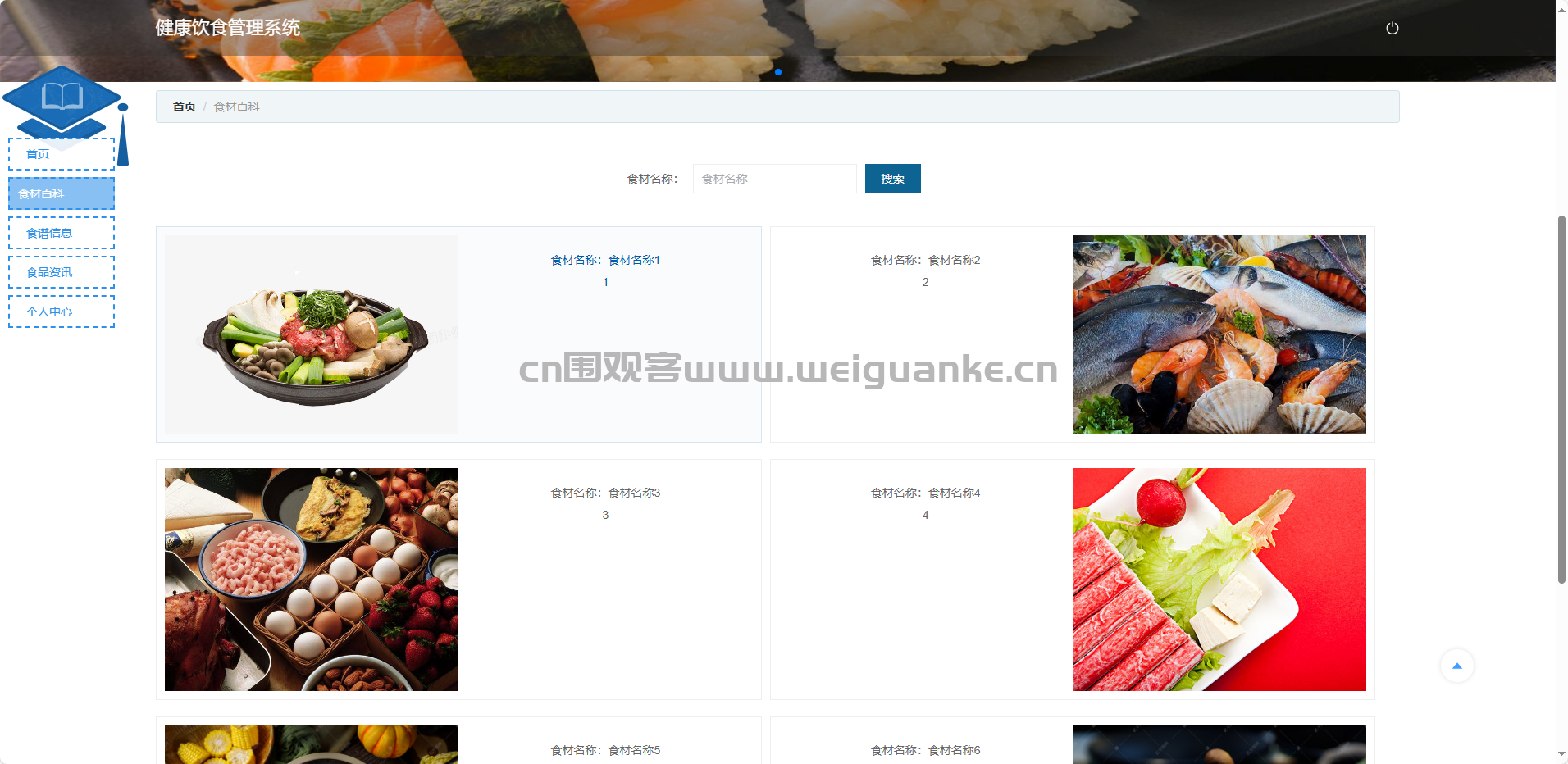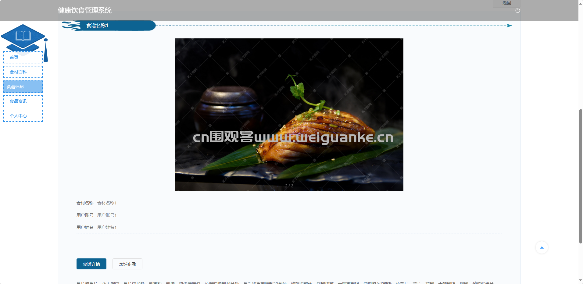 SpringBoot+Vue“健康饮食管理系统”:前台查食材、搜食谱、看资讯,后台一键管菜、管文、管图、管人,让健康饮食“查得到、做得出、吃得好”。