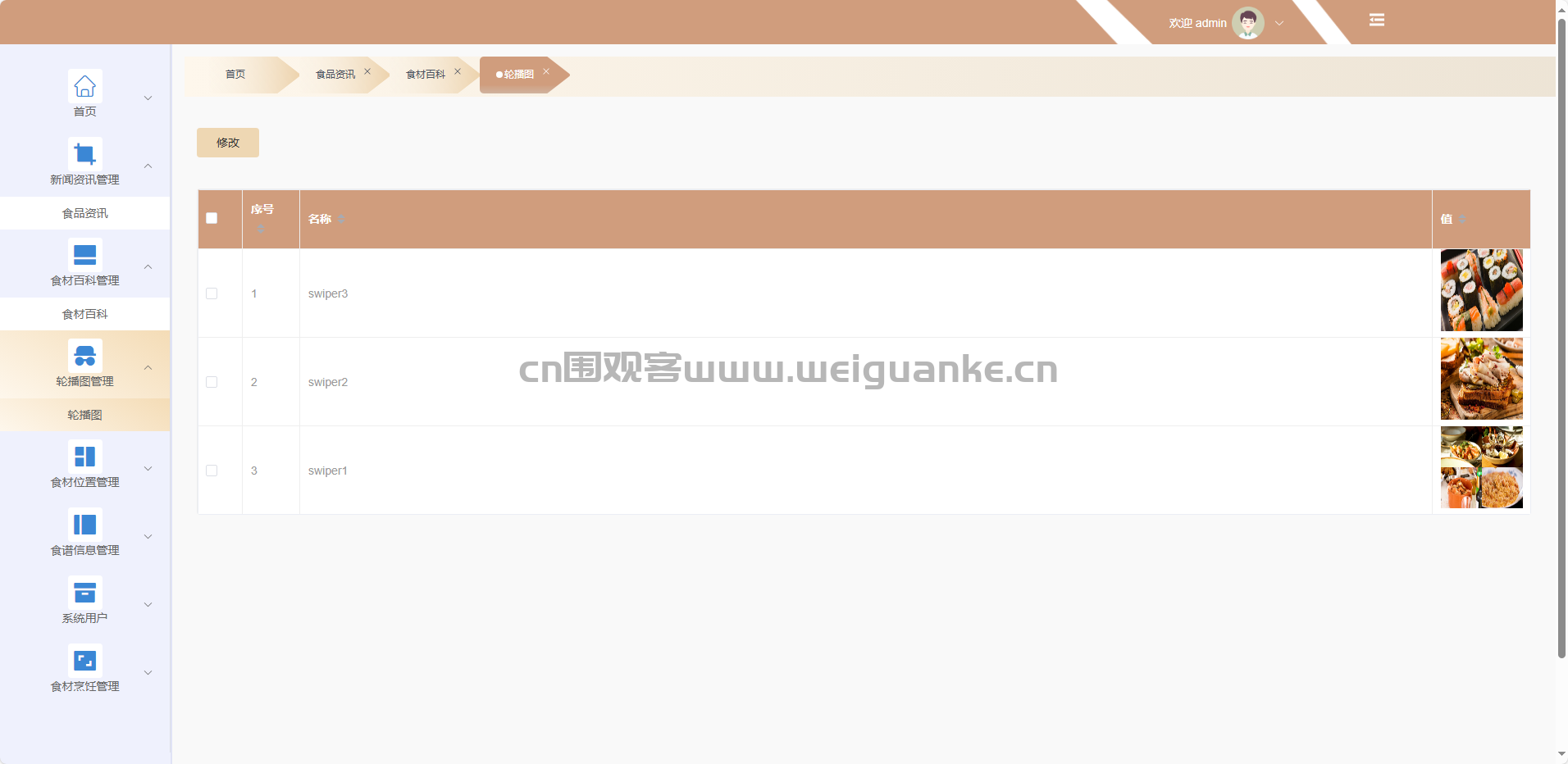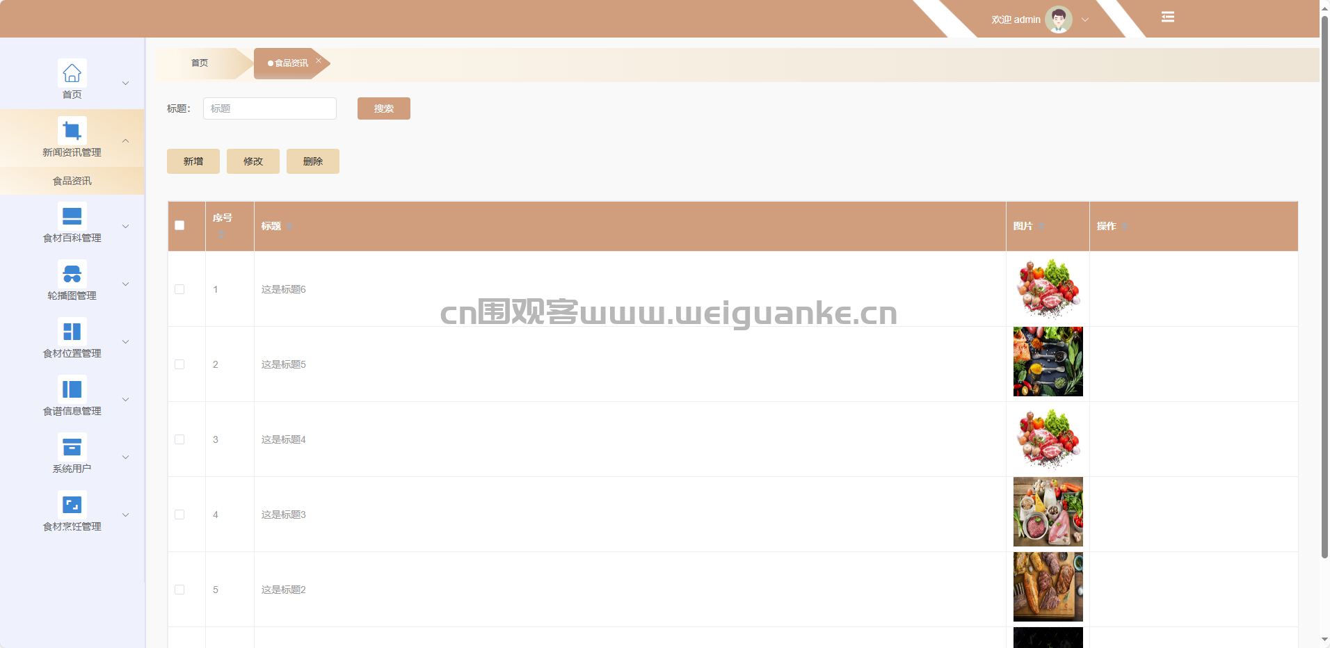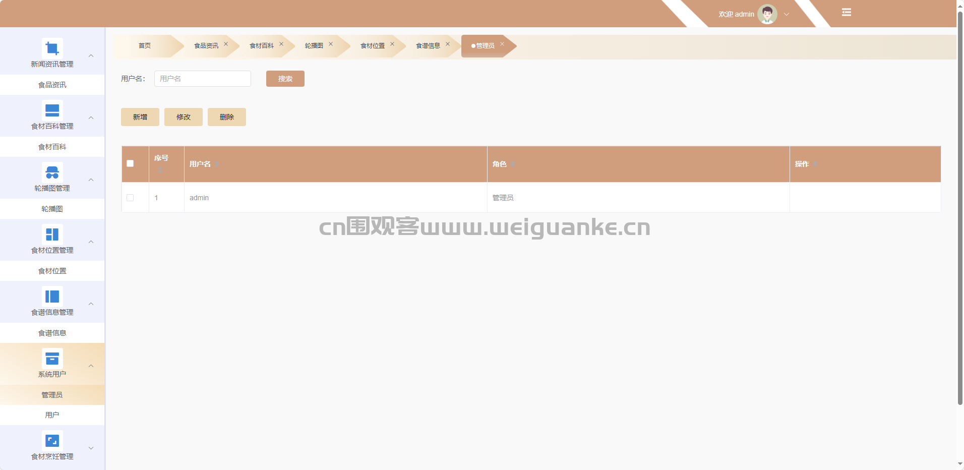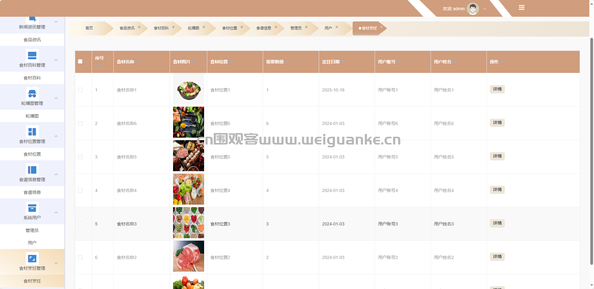 SpringBoot+Vue“健康饮食管理系统”:前台查食材、搜食谱、看资讯,后台一键管菜、管文、管图、管人,让健康饮食“查得到、做得出、吃得好”。