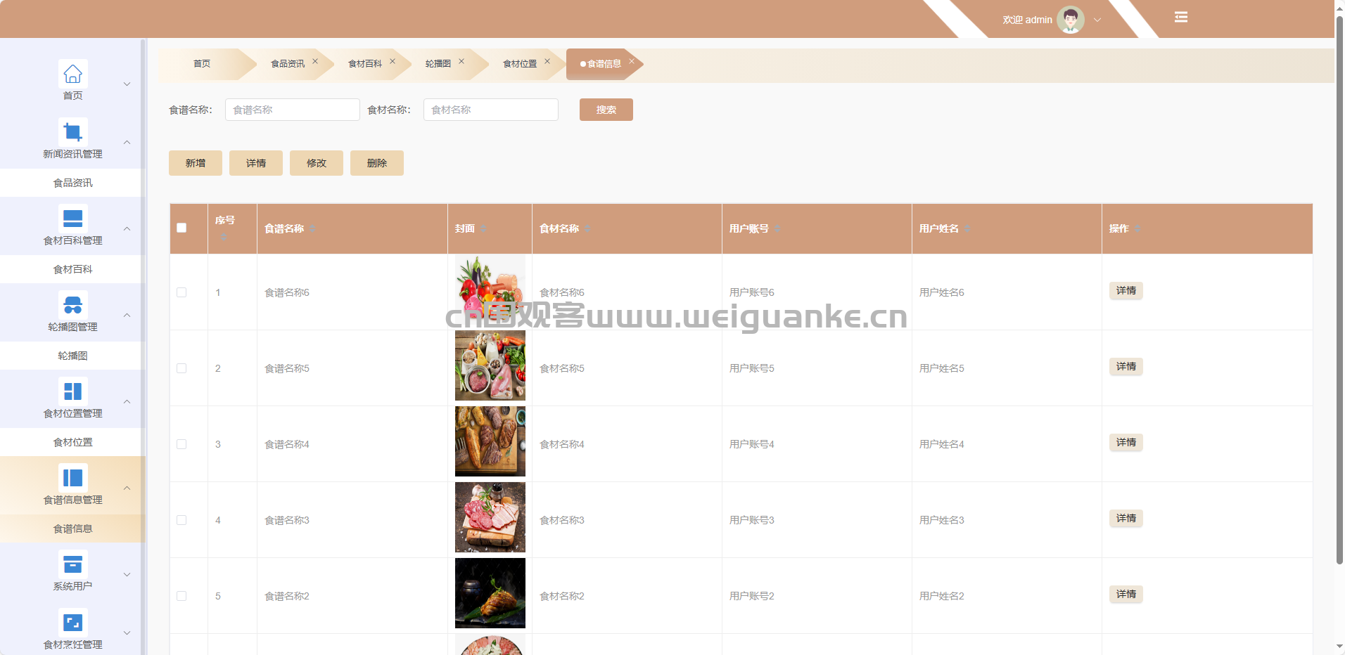 食材烹饪:查看/删除用户发布的做菜笔记。