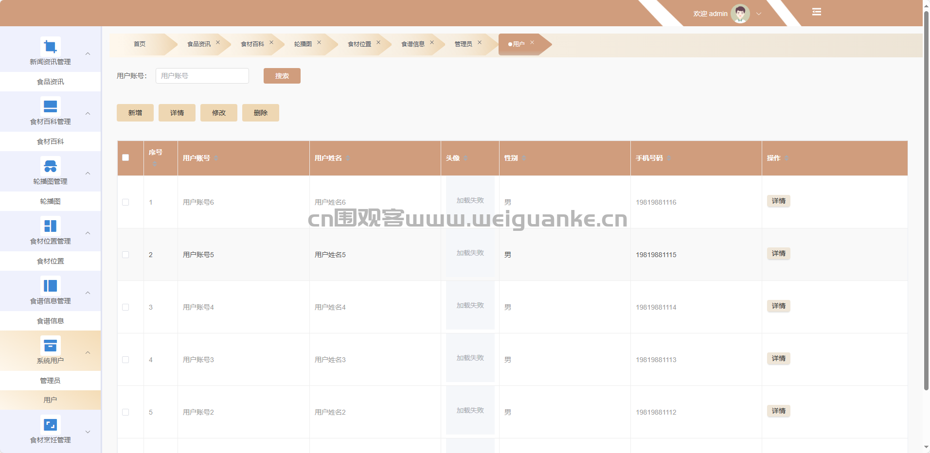 系统用户-用户:增删改查前台账号,启用/禁用。