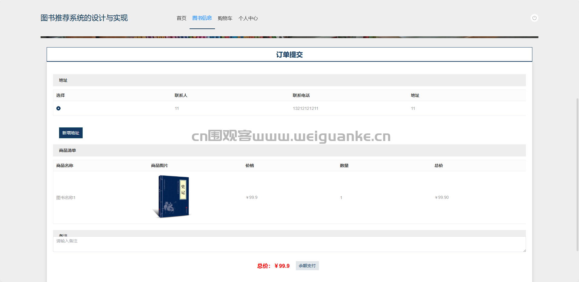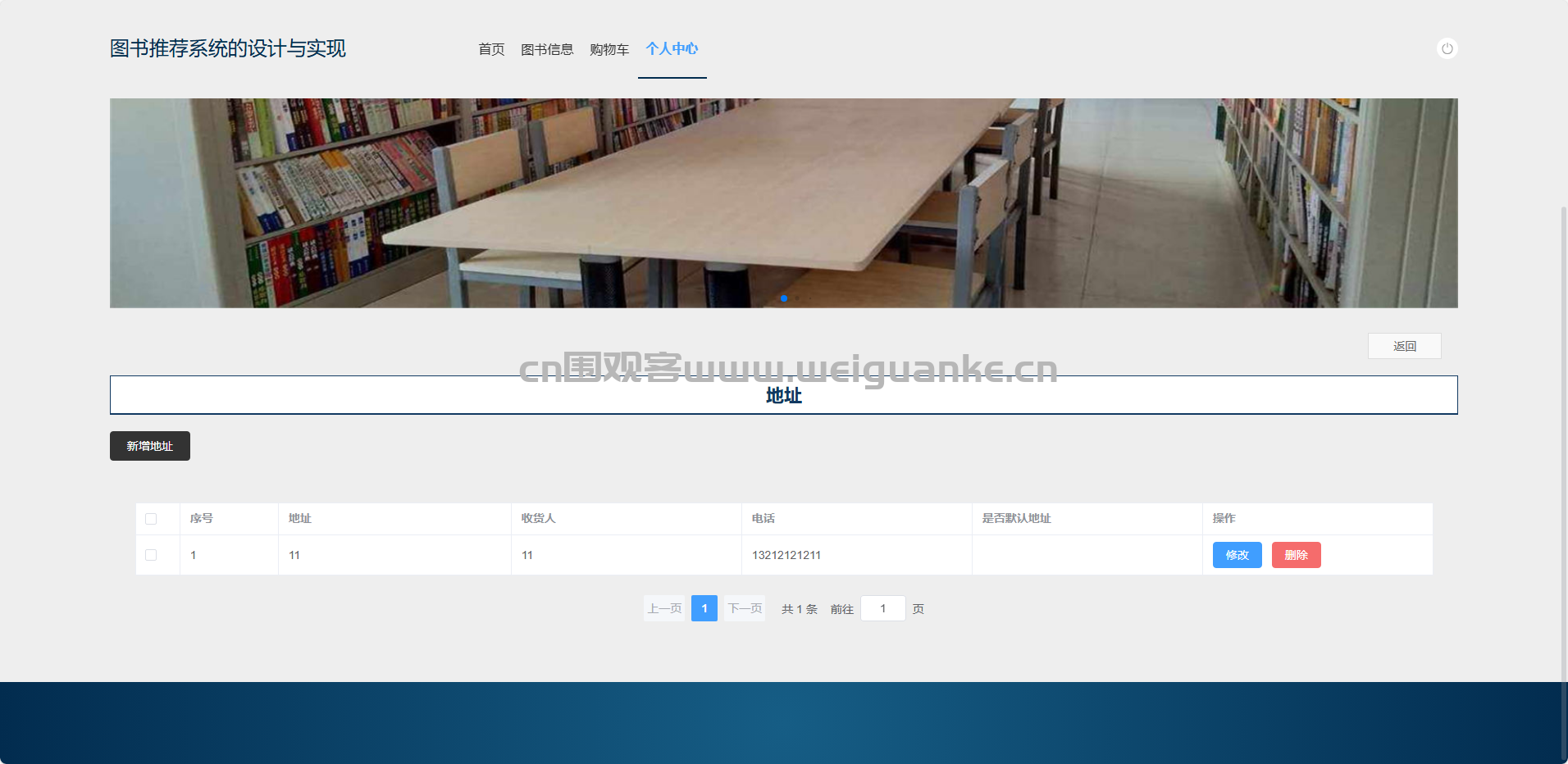 地址管理:增删改查收货/取书地址。