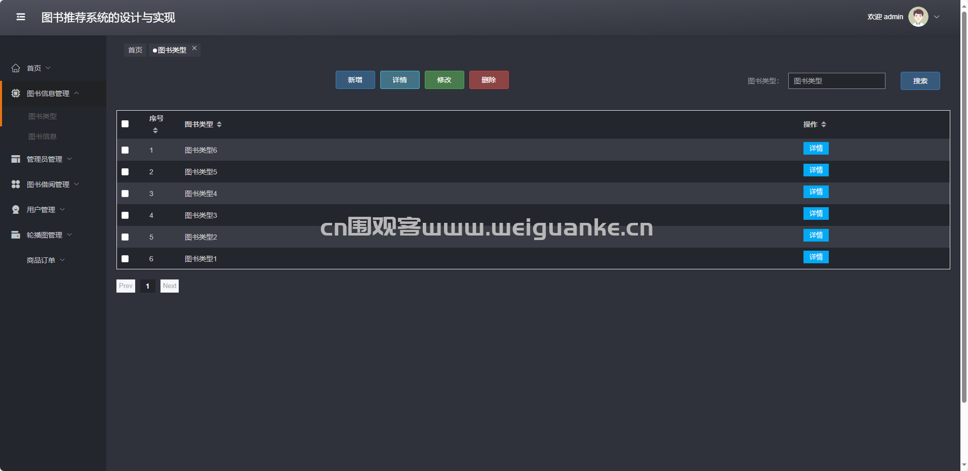 图书信息管理-图书类型:增删改查分类标签。