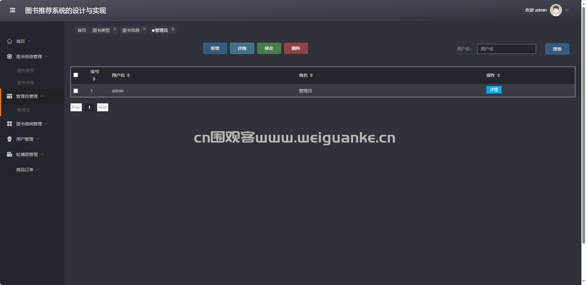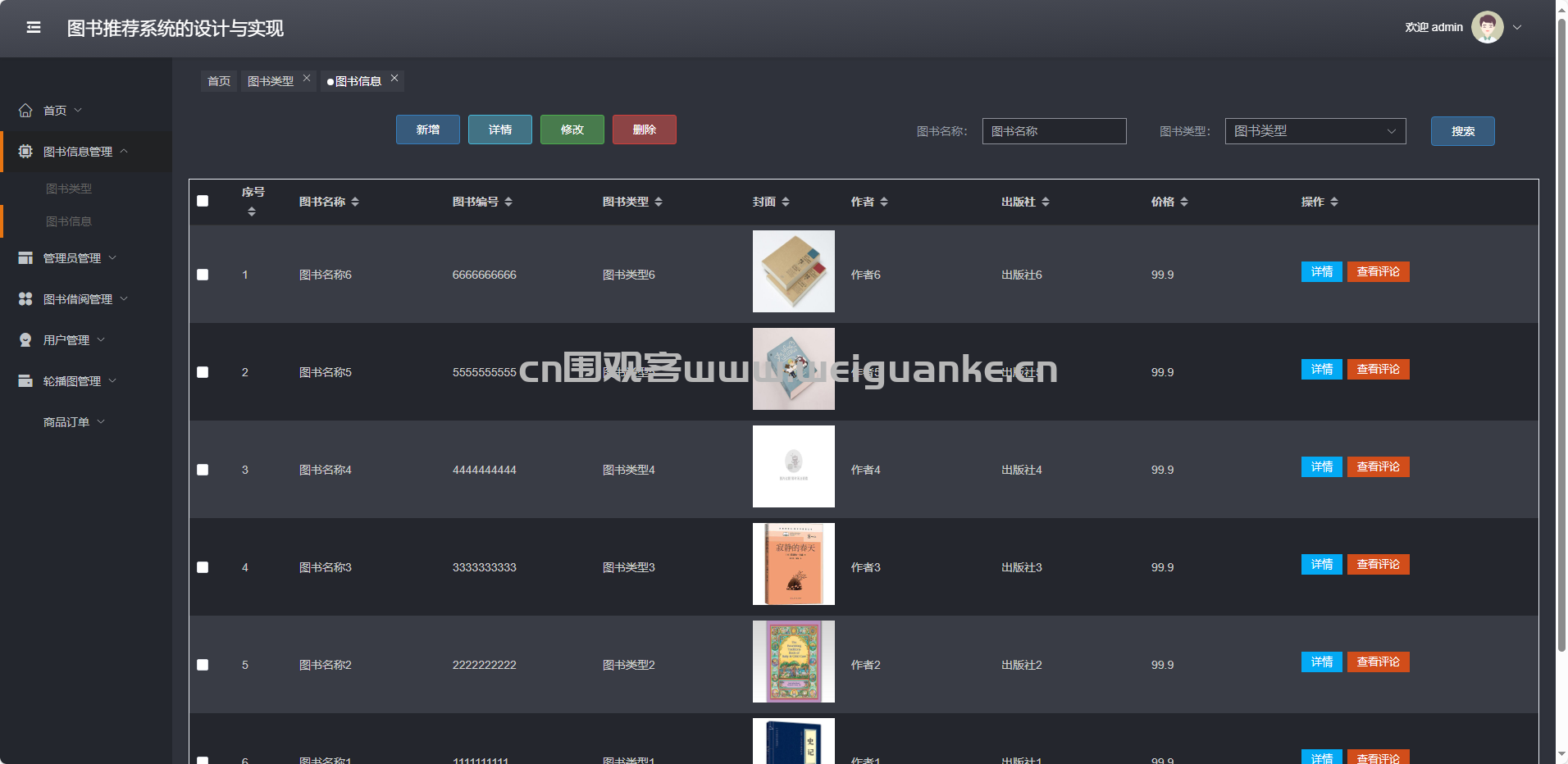 图书信息管理-图书信息:新增、修改、删除、查询图书及推荐权重。