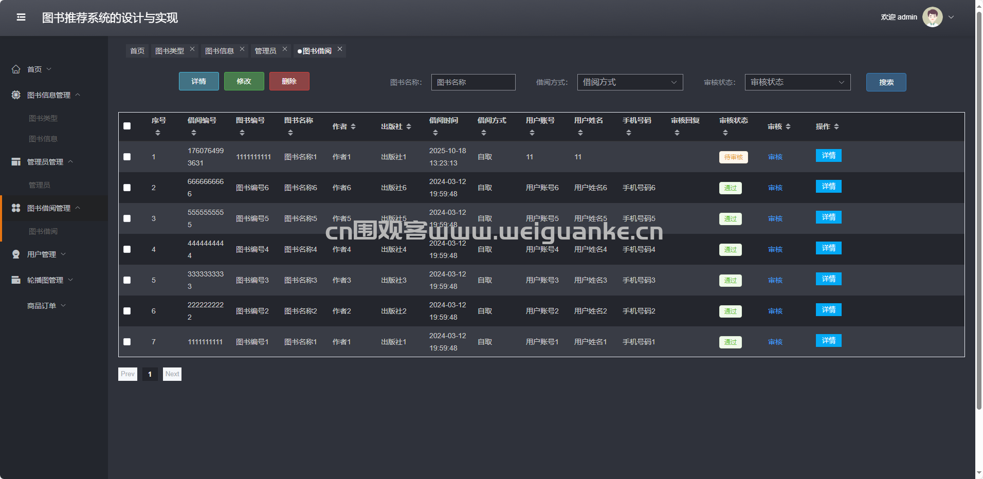 图书借阅管理:审核借还、查看逾期、导出借阅报表。