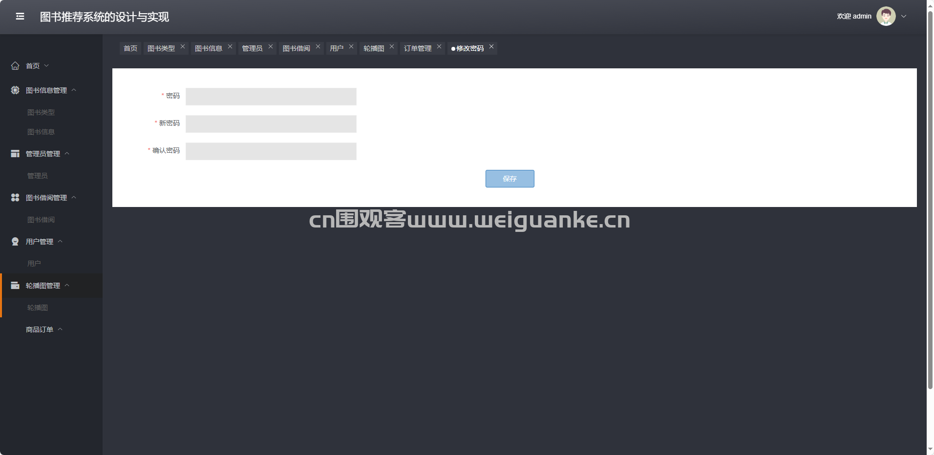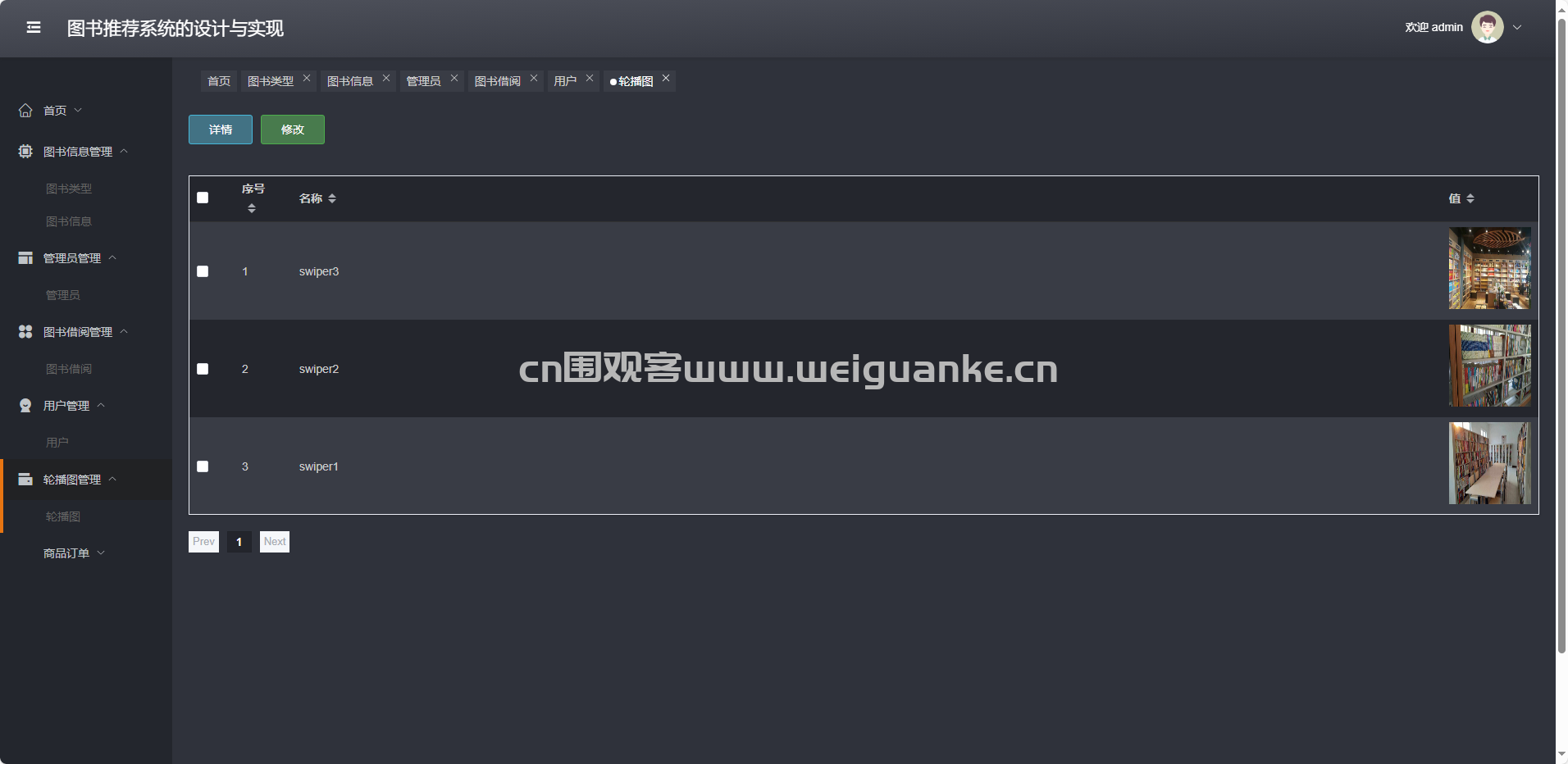 轮播图管理:增删改查首页推荐轮播图片及链接。