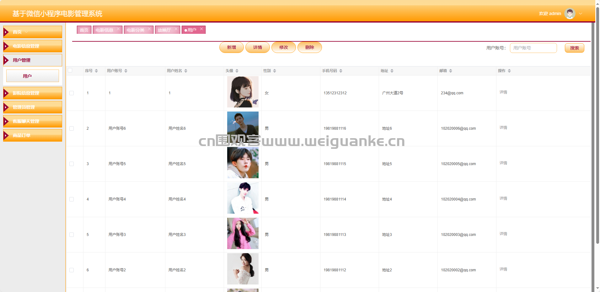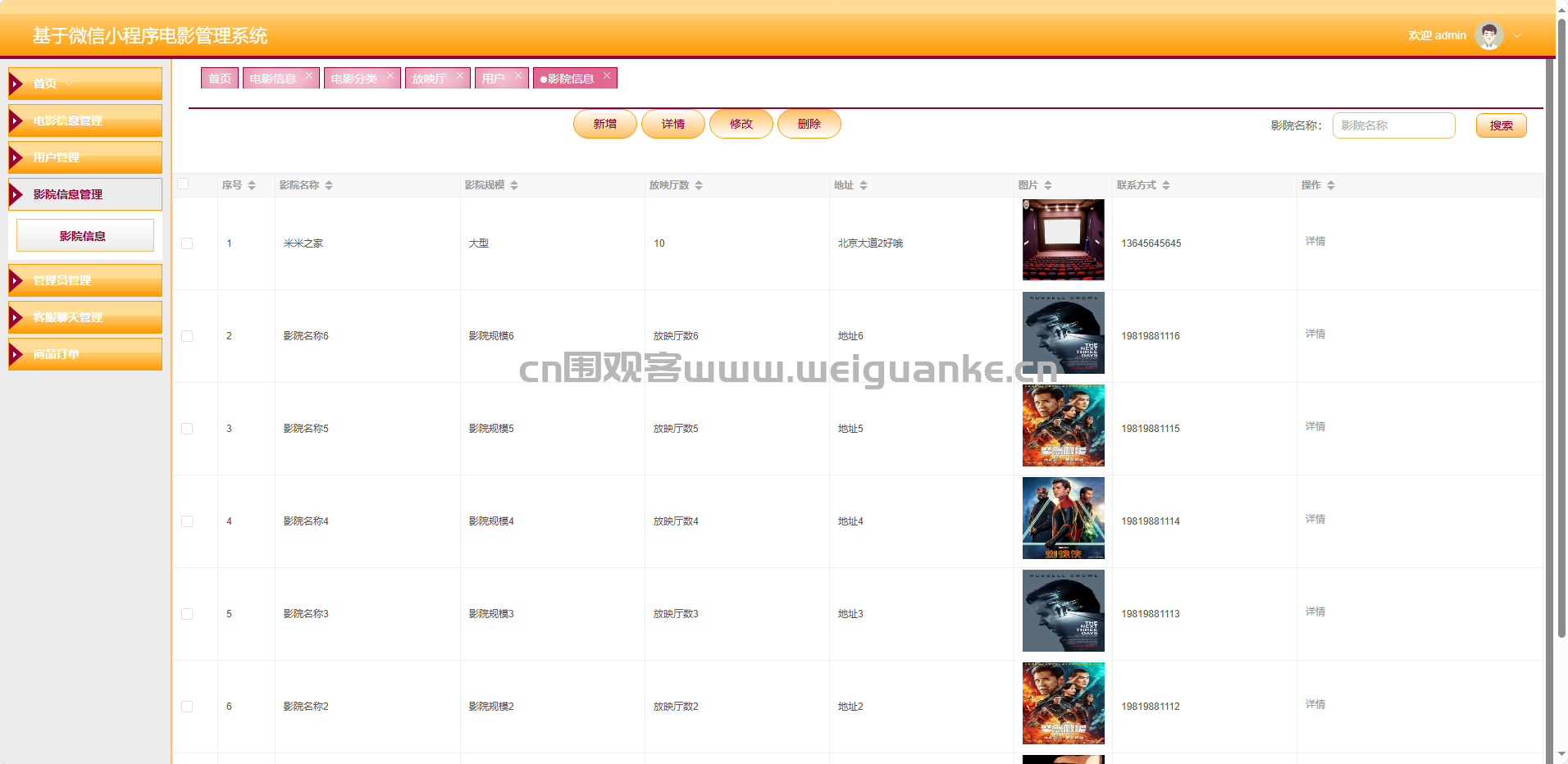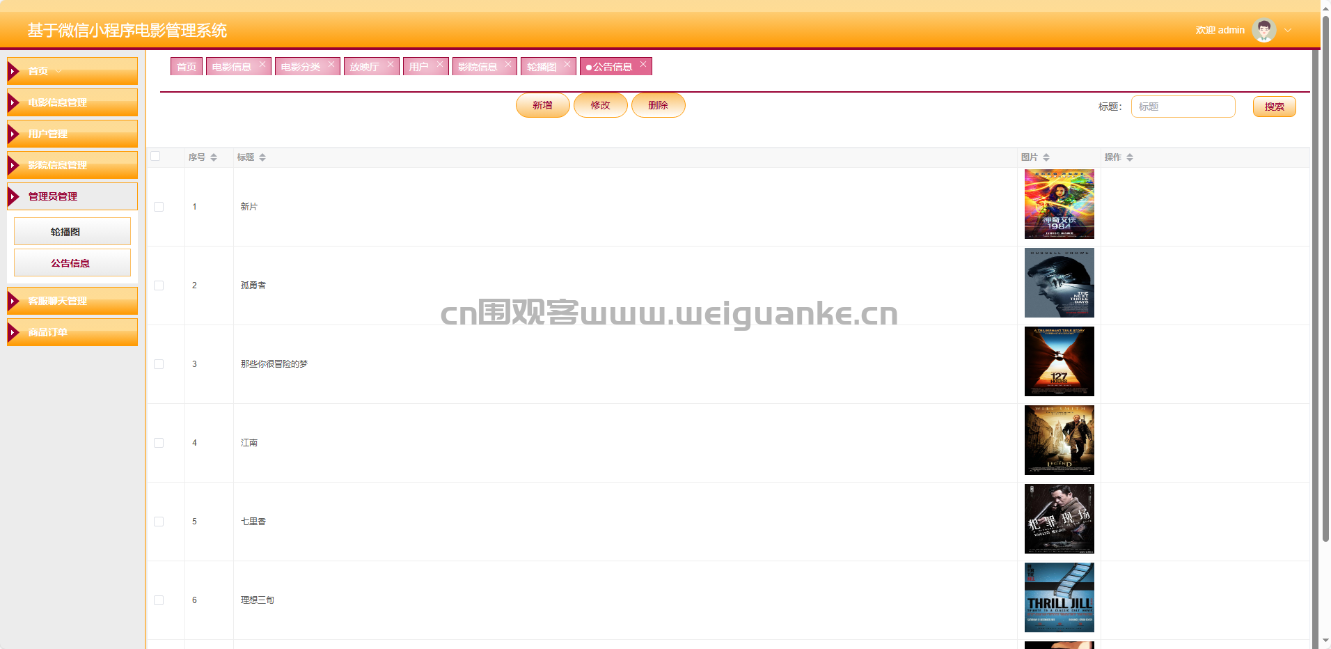 项目描述 基于springboot + vue +微信小程序的电影管理系统
