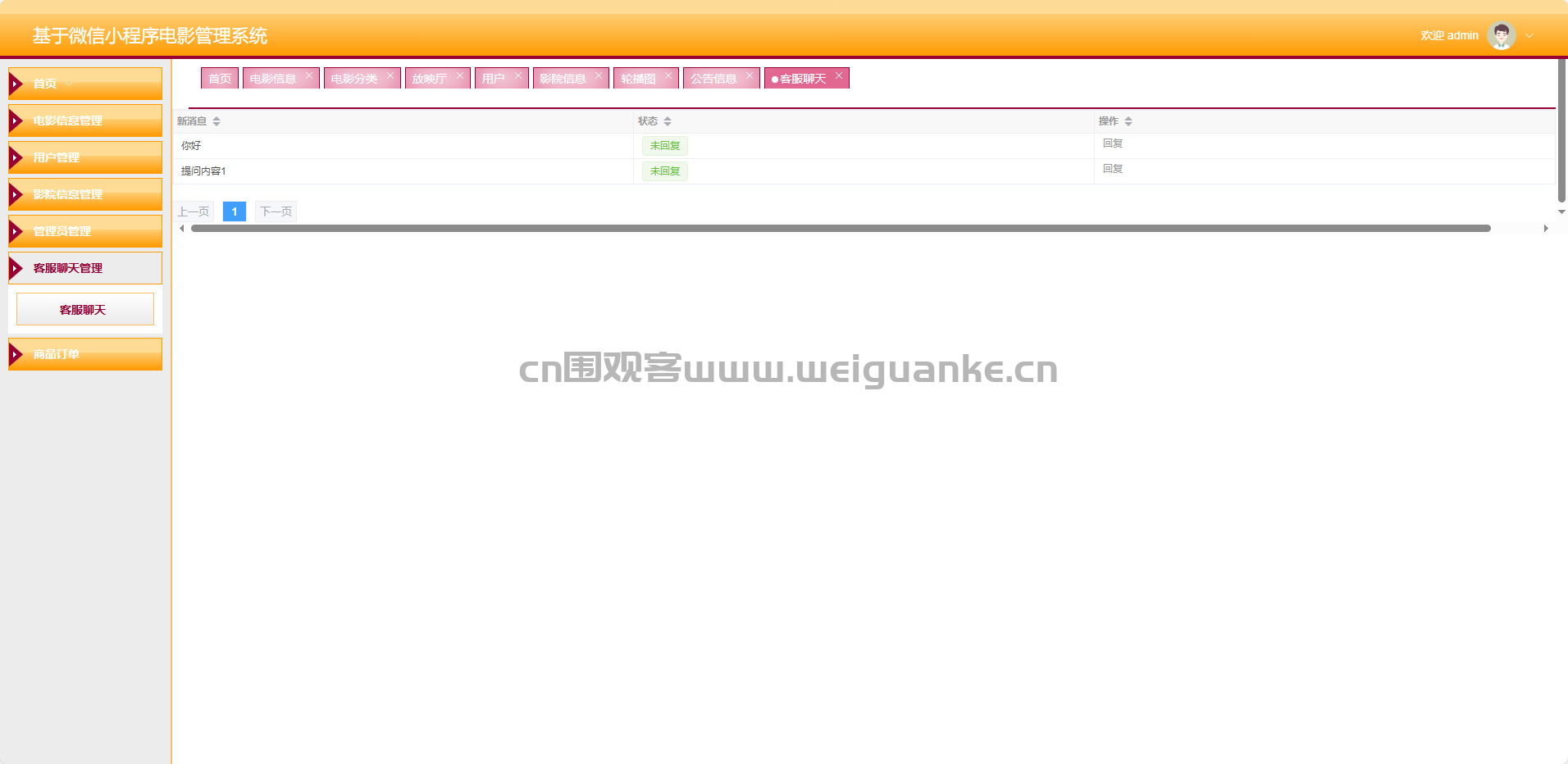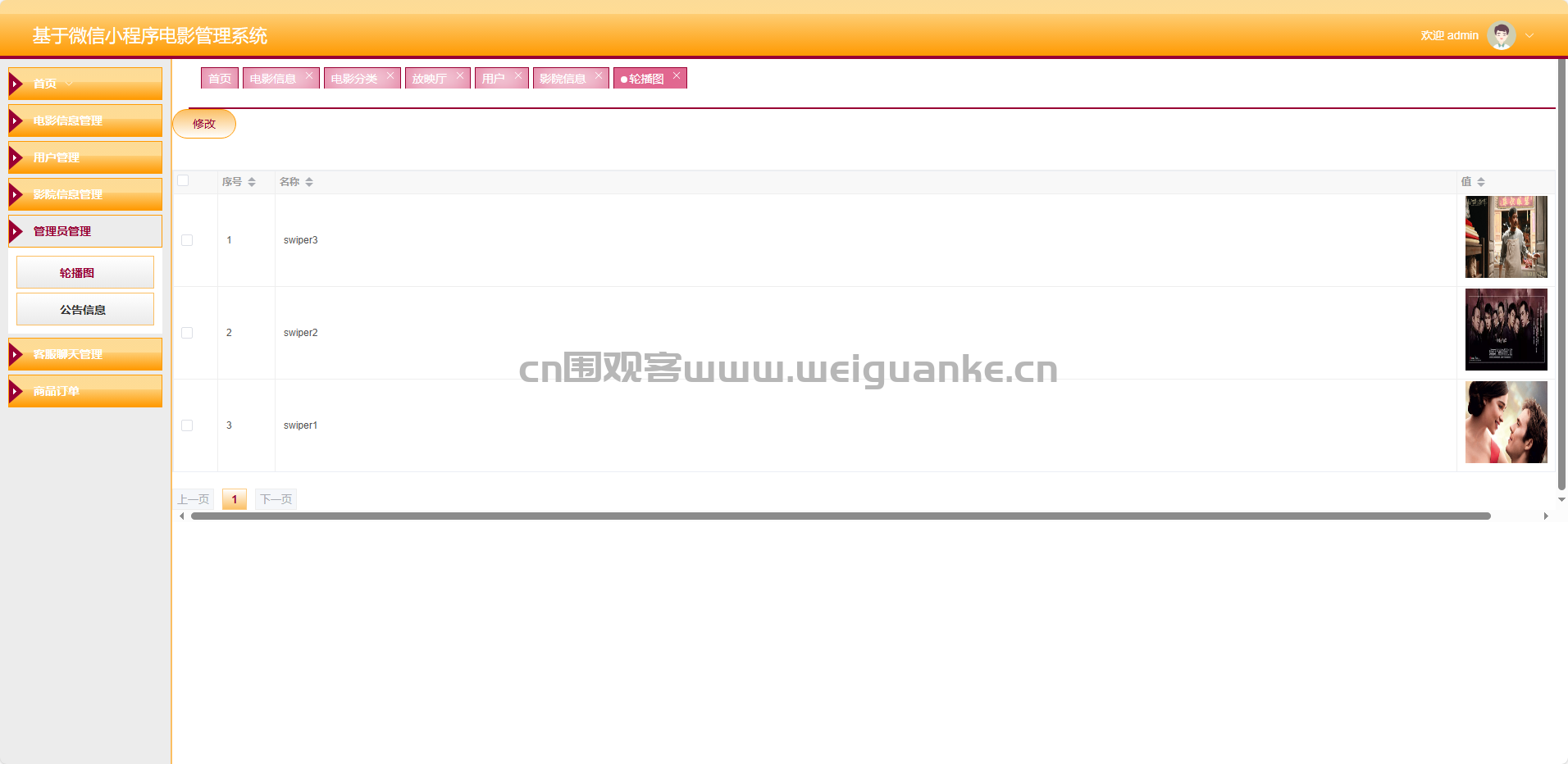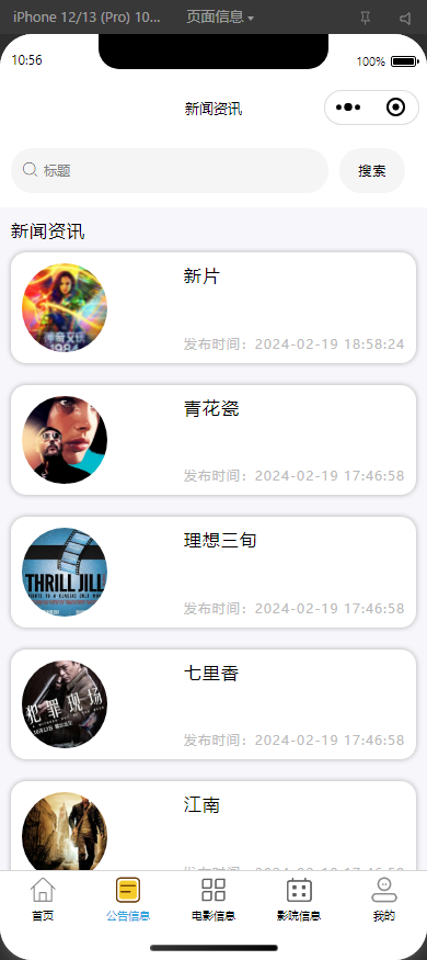 项目描述 基于springboot + vue +微信小程序的电影管理系统