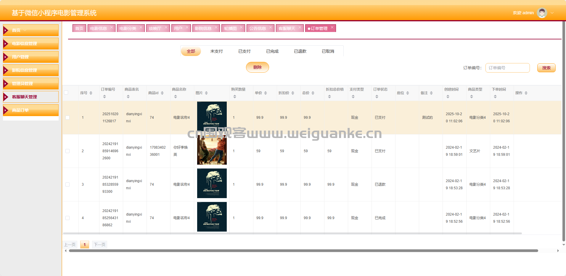 基于SpringBoot+Vue+微信小程序构建的电影全生命周期管理平台,实现影片信息维护、排片调度、在线选座、订单结算及售后退款闭环,支持客户端浏览与后台集中管控。