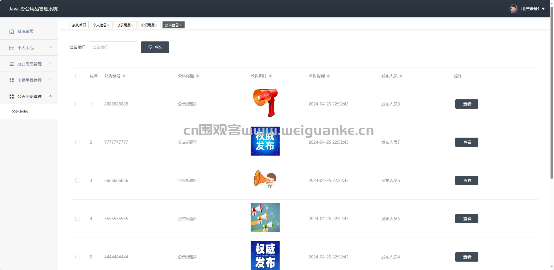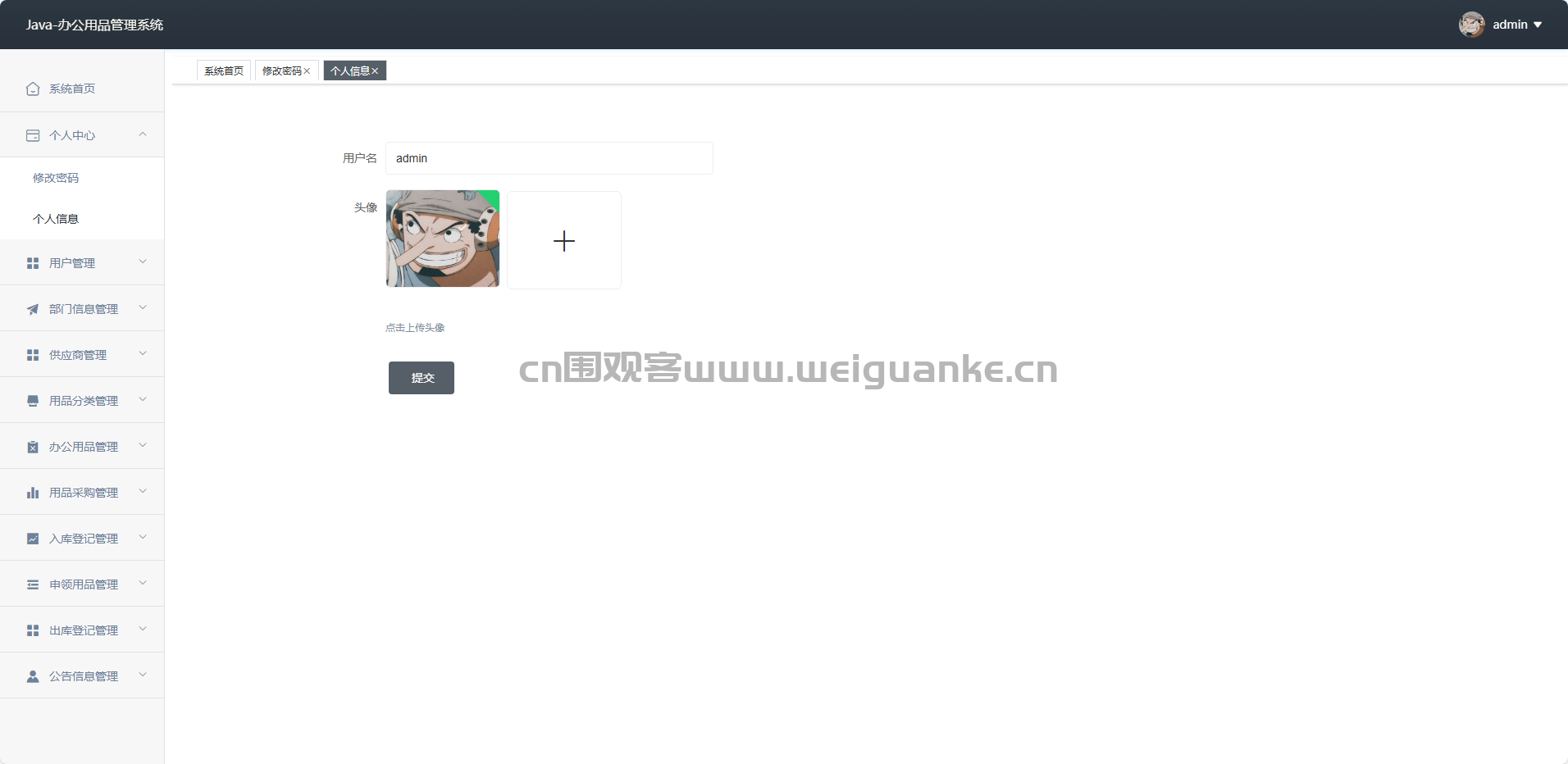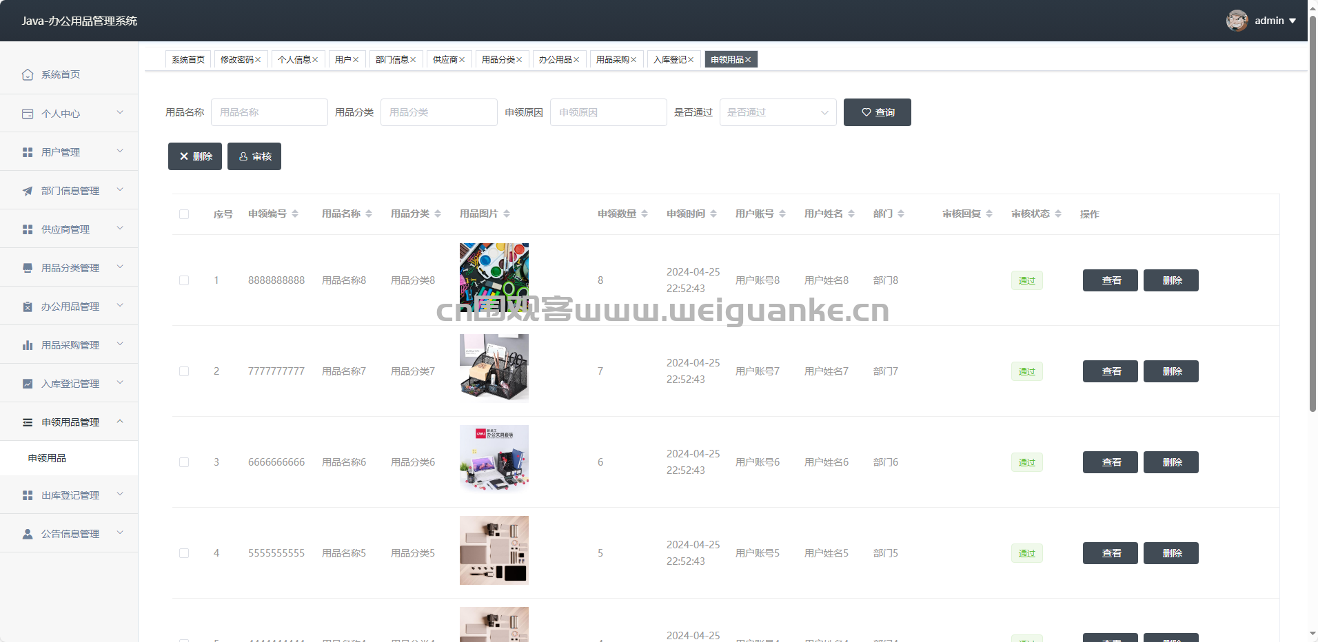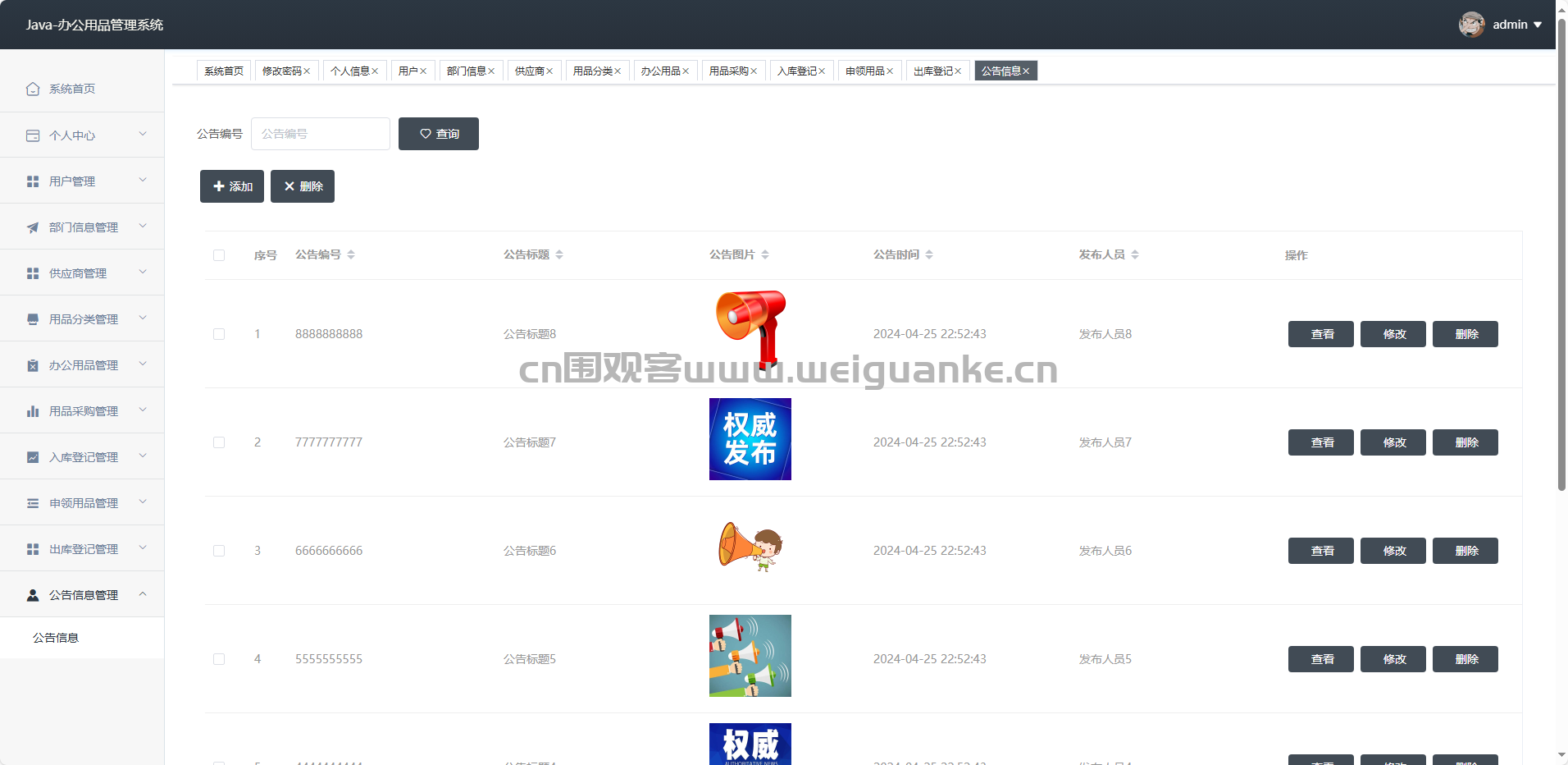 SpringBoot+Vue“办公用品管理系统”:员工在线申领、管理员一站式采购-入库-出库-发公告,让办公用品“随申随领、库存秒更”。