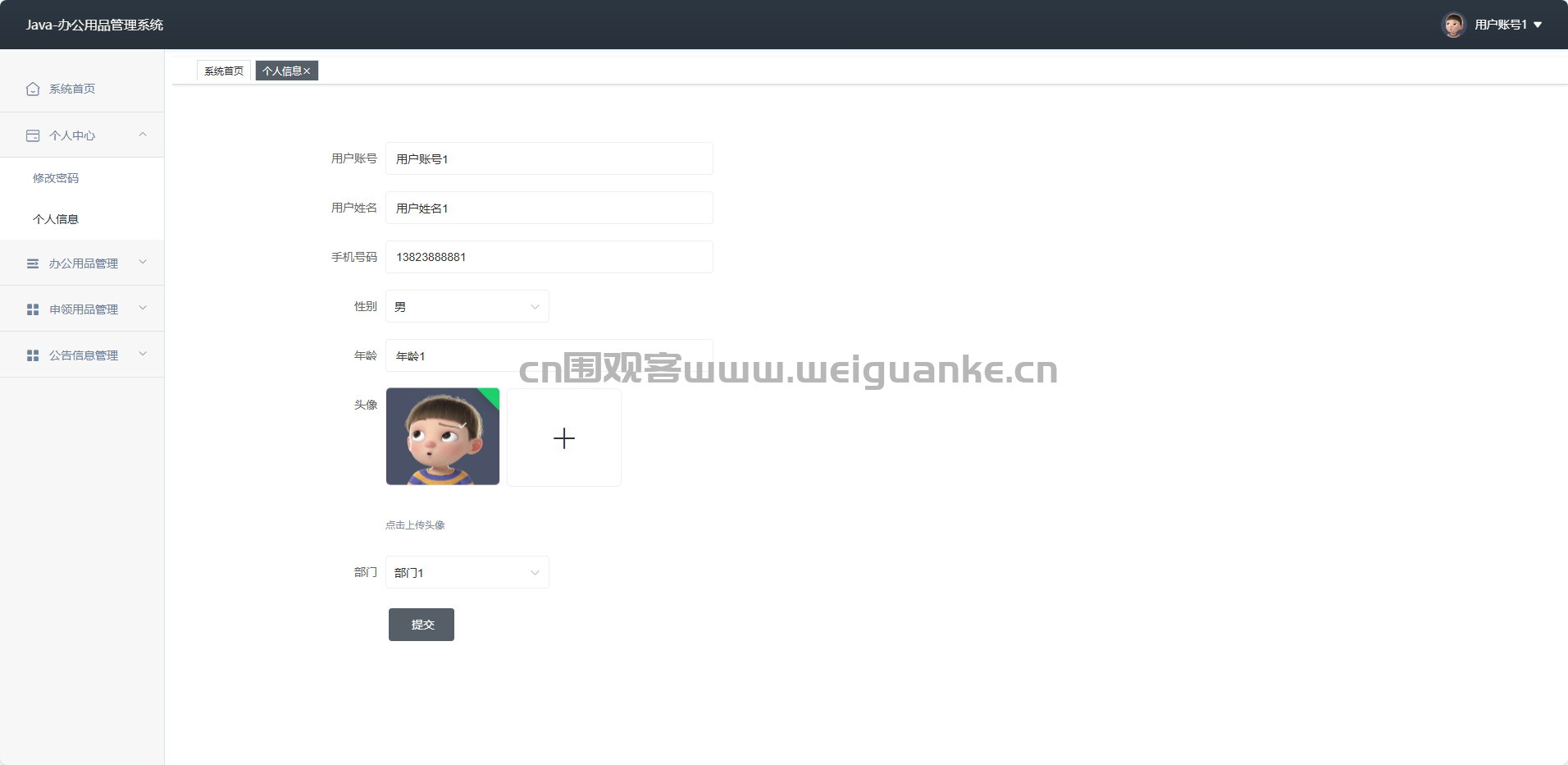 个人中心-个人信息:姓名、手机、部门,随时改。