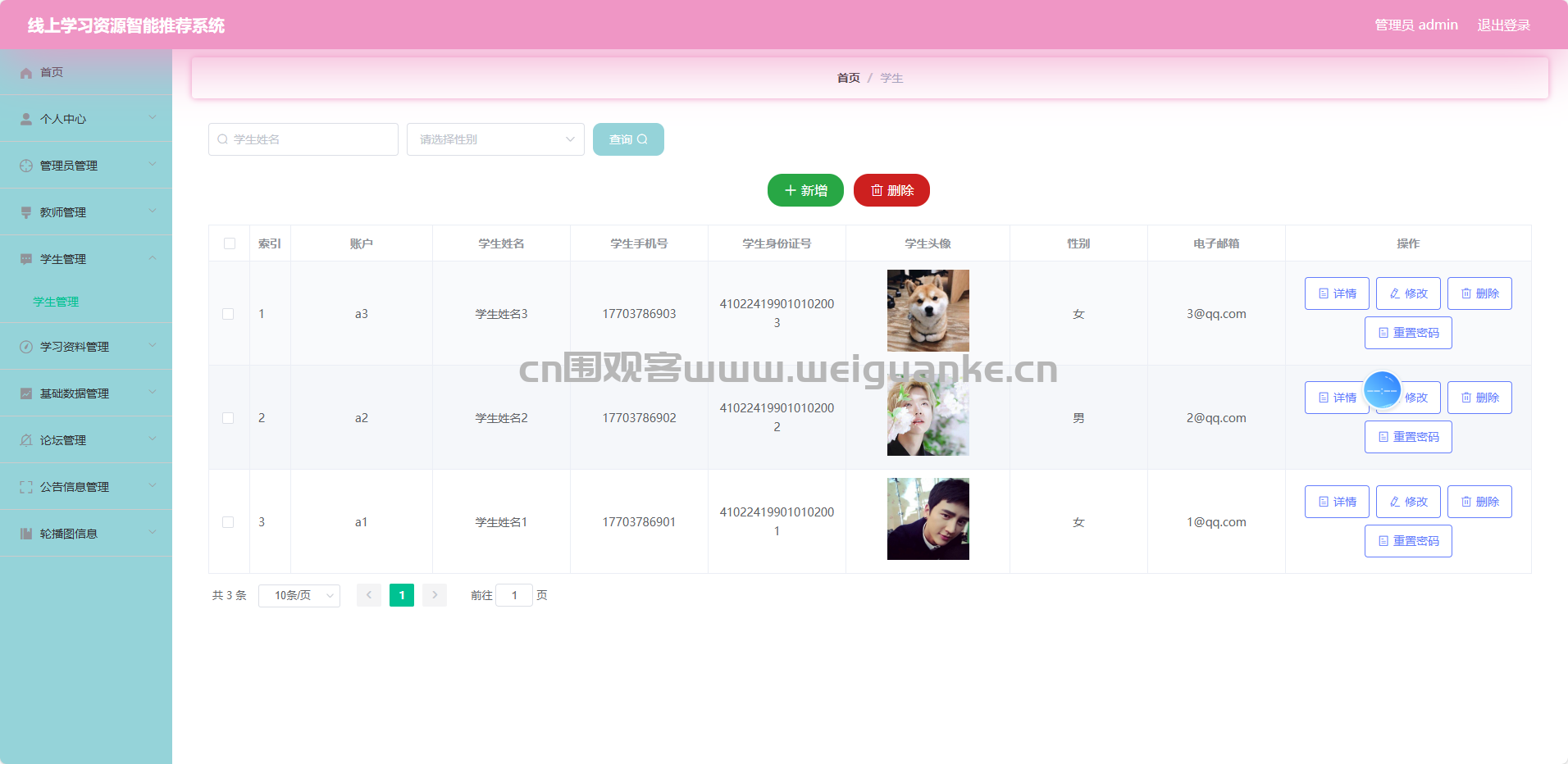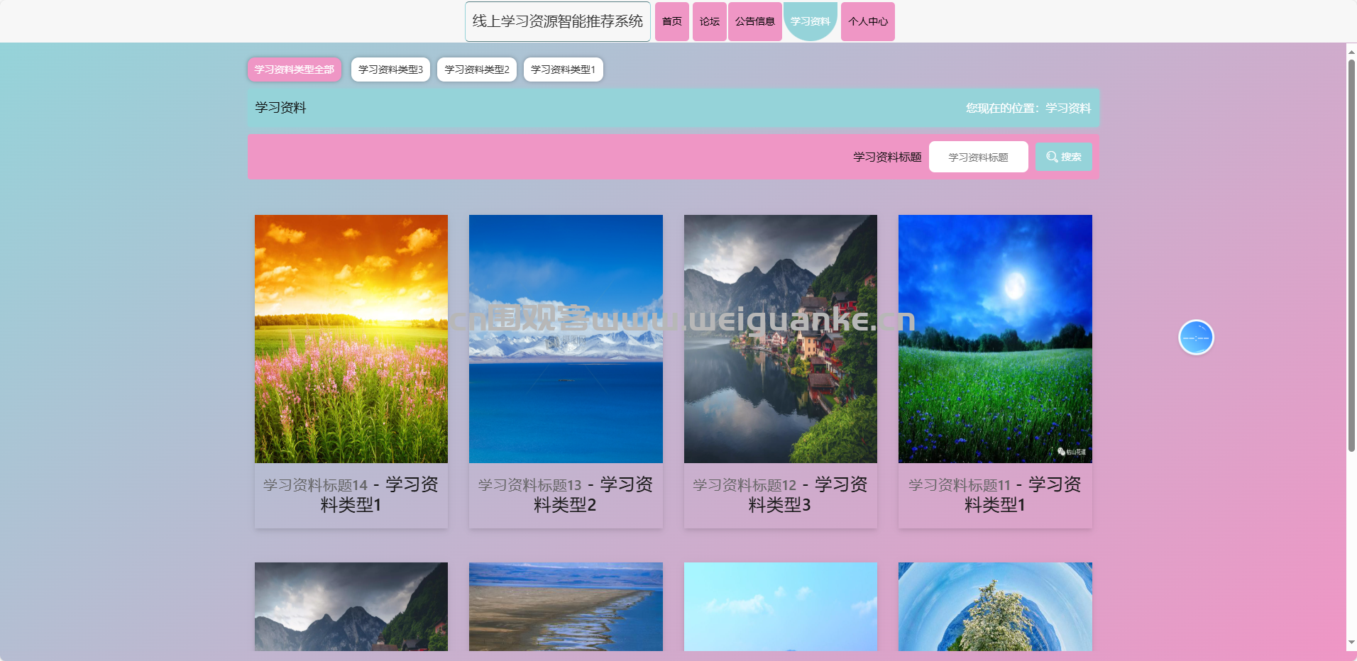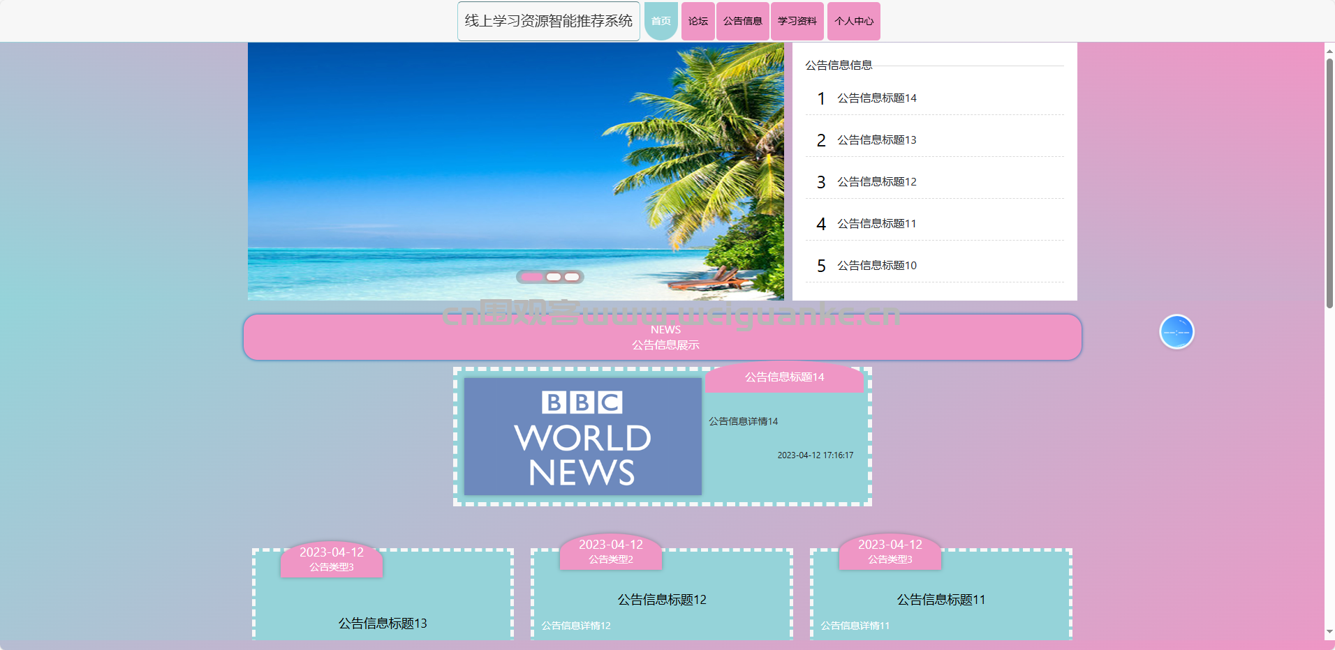 基于springboot+vue的线上学习资源智能推荐系统通过MySQL数据库连接数据库