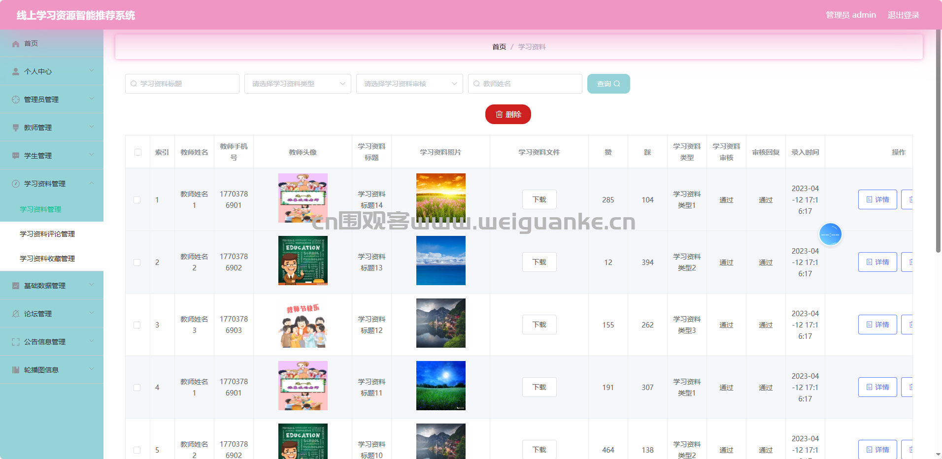 学习资料管理:课件、视频、题库集中仓库,支持版本控制、标签分类与下载权限管控。