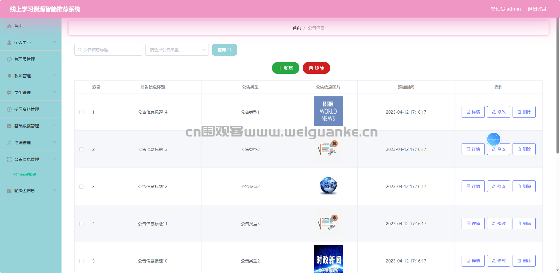 公告信息管理:官方通知发布中枢,可定时推送、置顶轮播,并跟踪已读/未读状态。