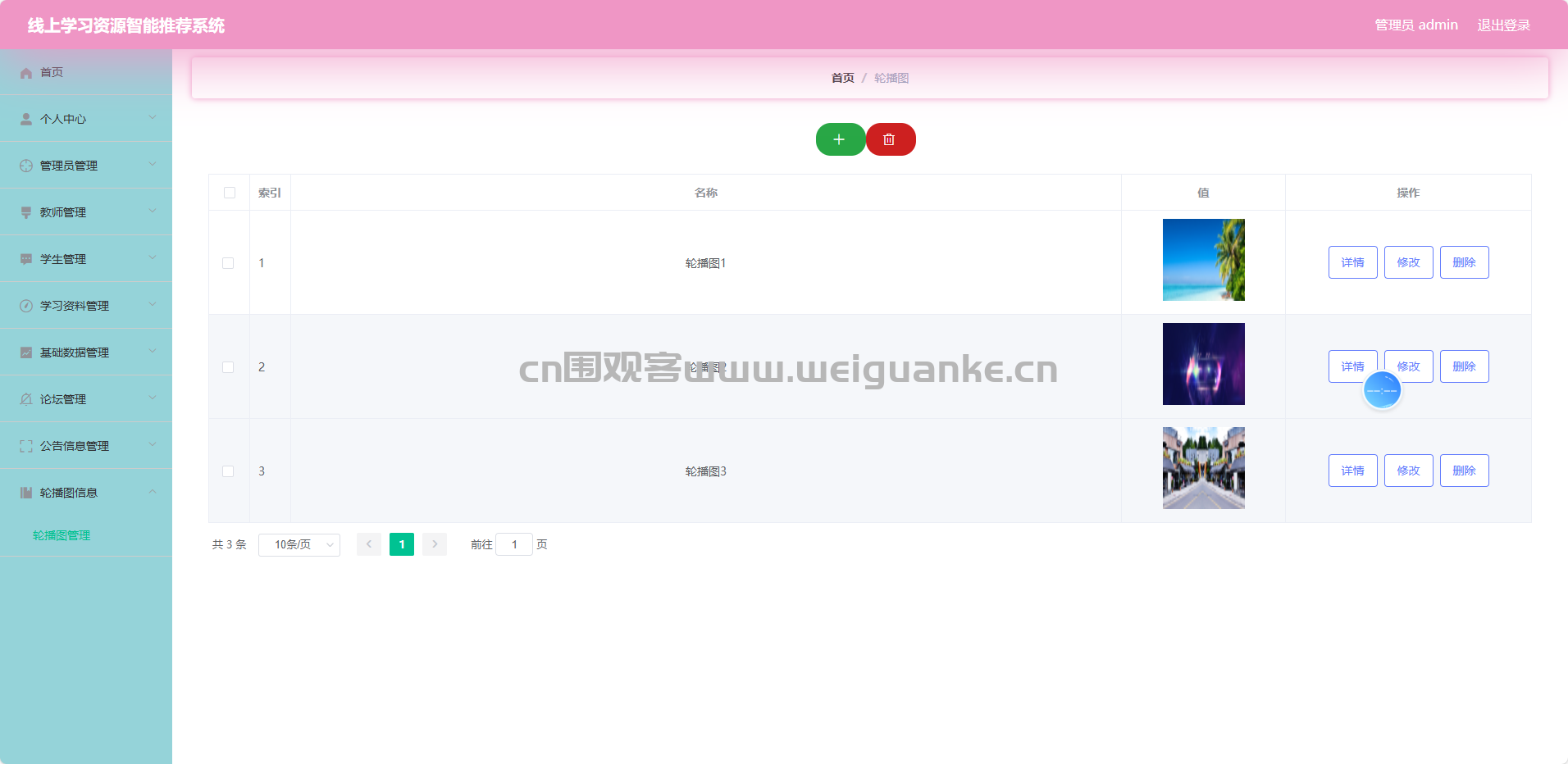 轮播图信息:首页视觉运营位,支持跳转链接、排期上线,让重要活动与资讯醒目曝光。