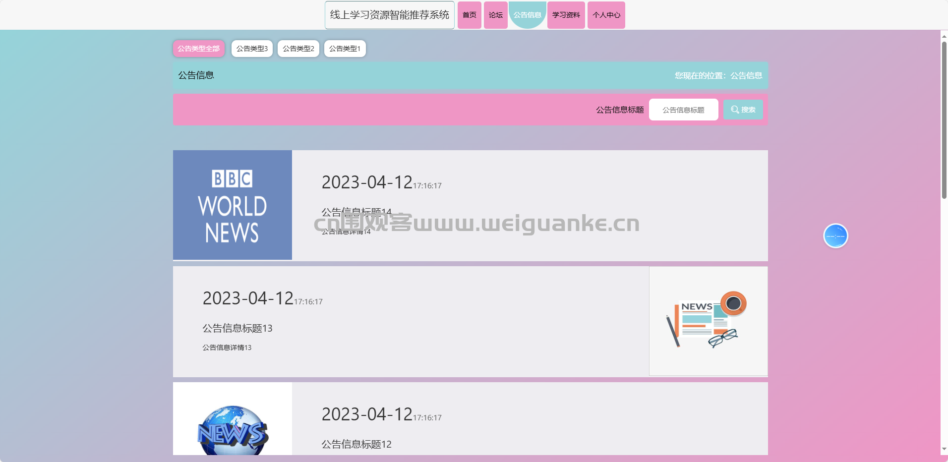 首页:学习导航第一站,热门课程、最新通知、个性推荐一键直达。