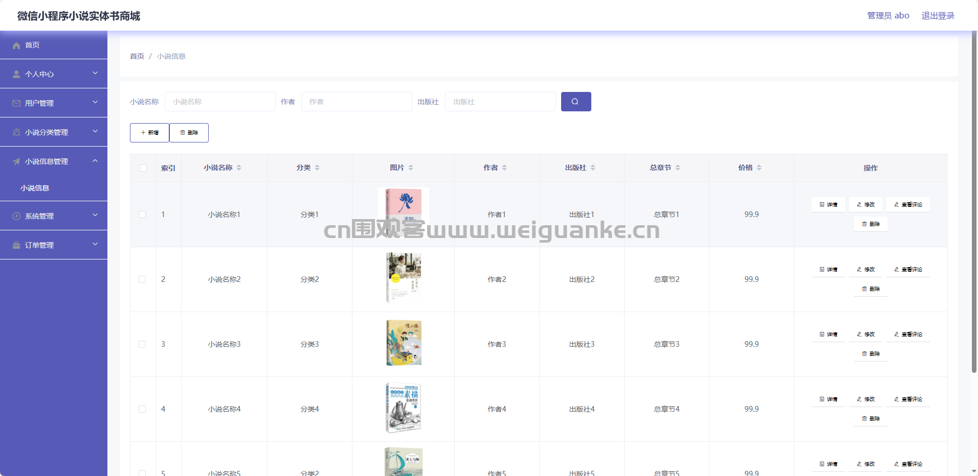 小说信息管理:集中维护作品元数据,支持上下架与版本追踪。