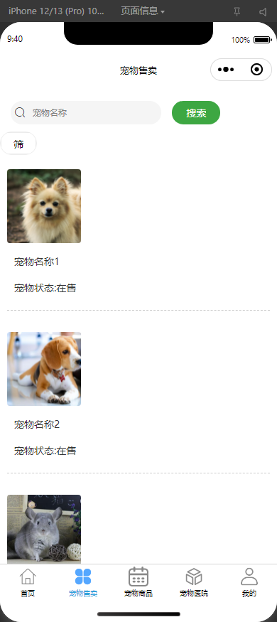 宠物售卖:发布、编辑、下架、查看宠物销售信息。