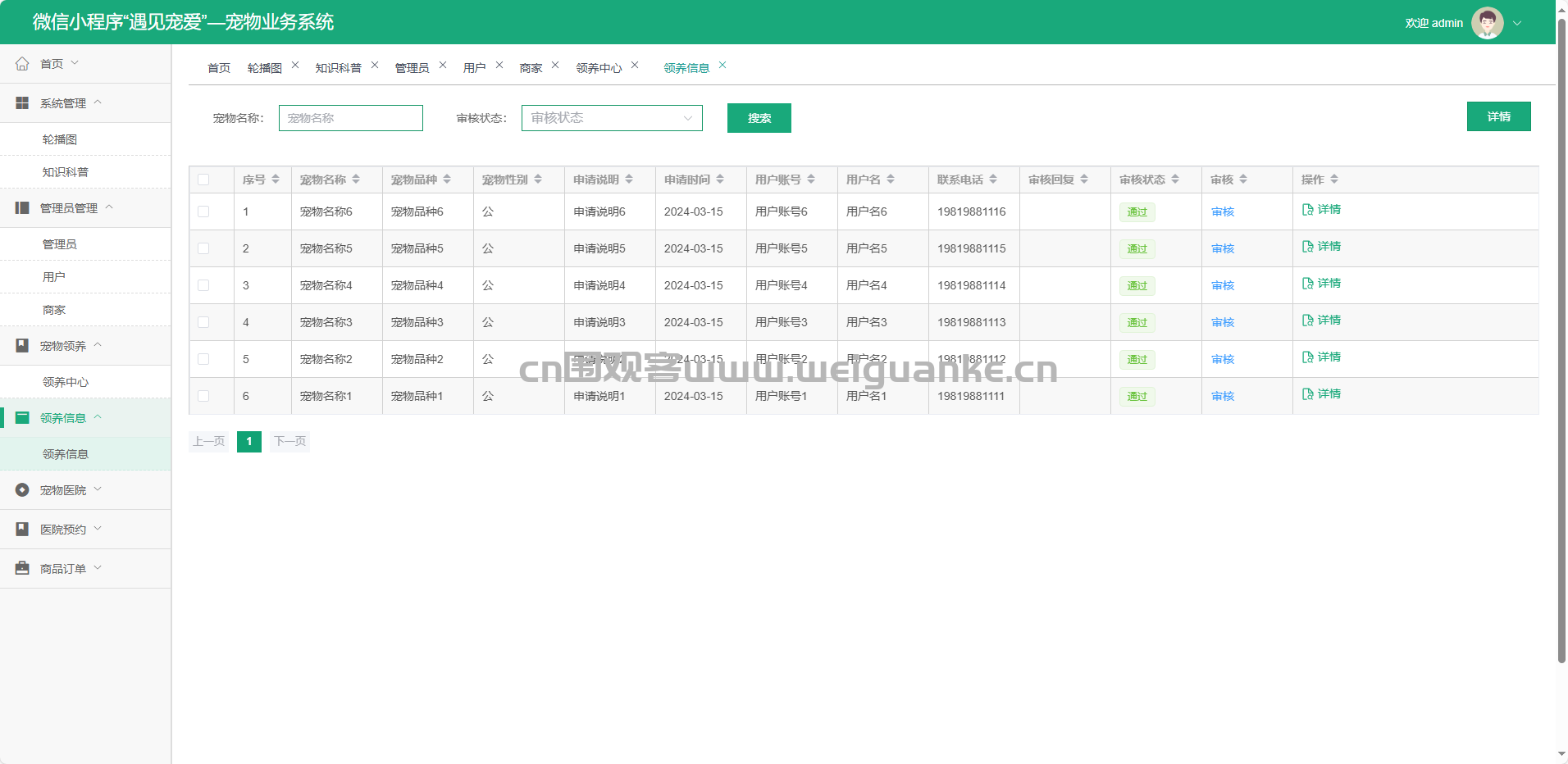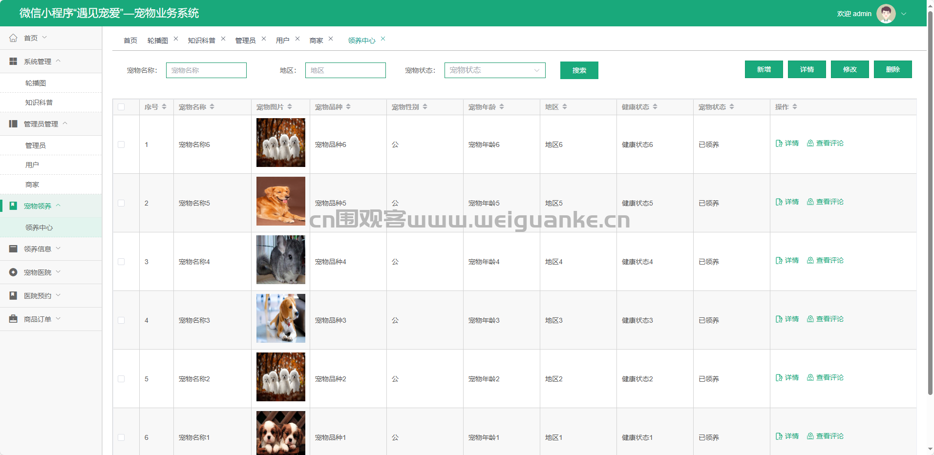 “遇见宠爱”—宠物业务系统-springboot + vue +微信小程序