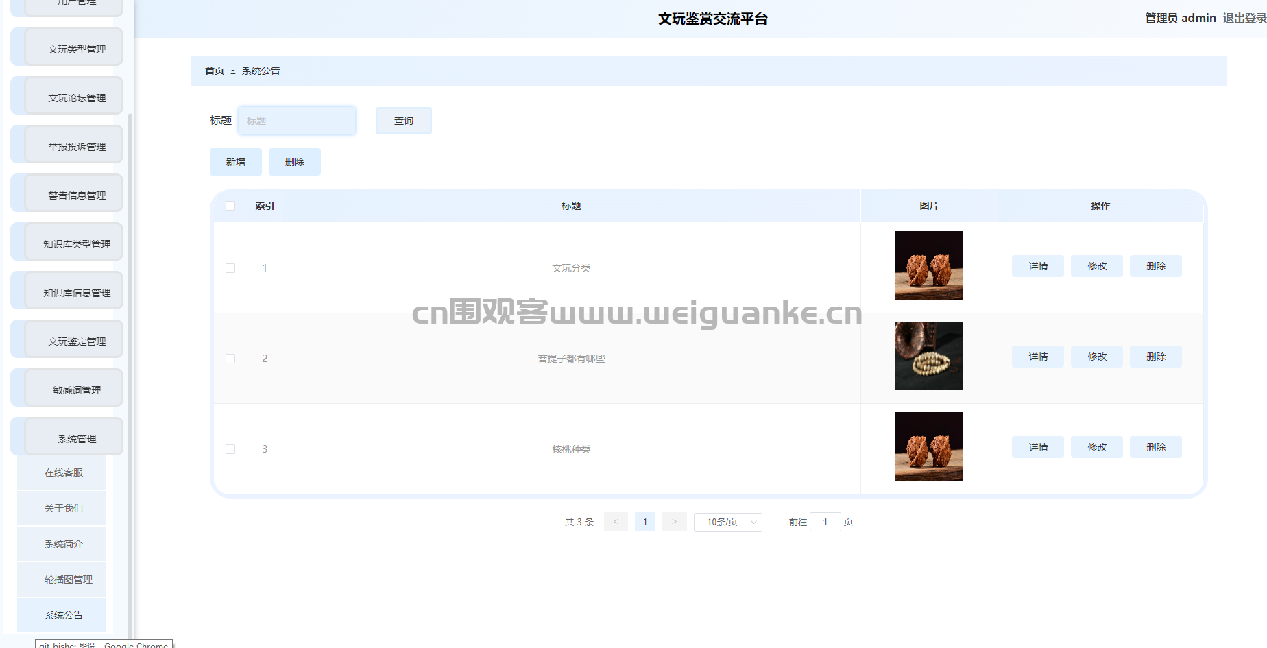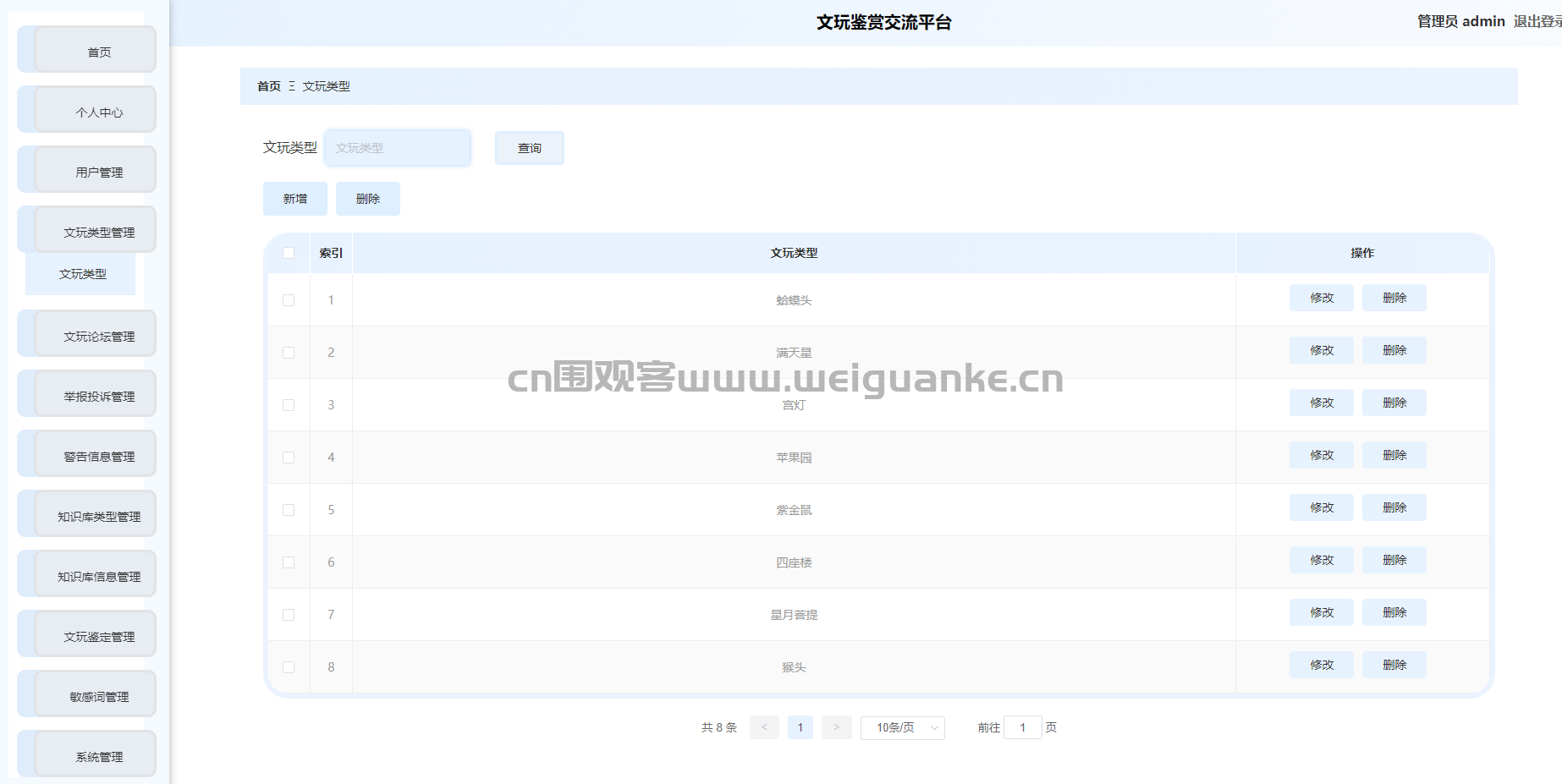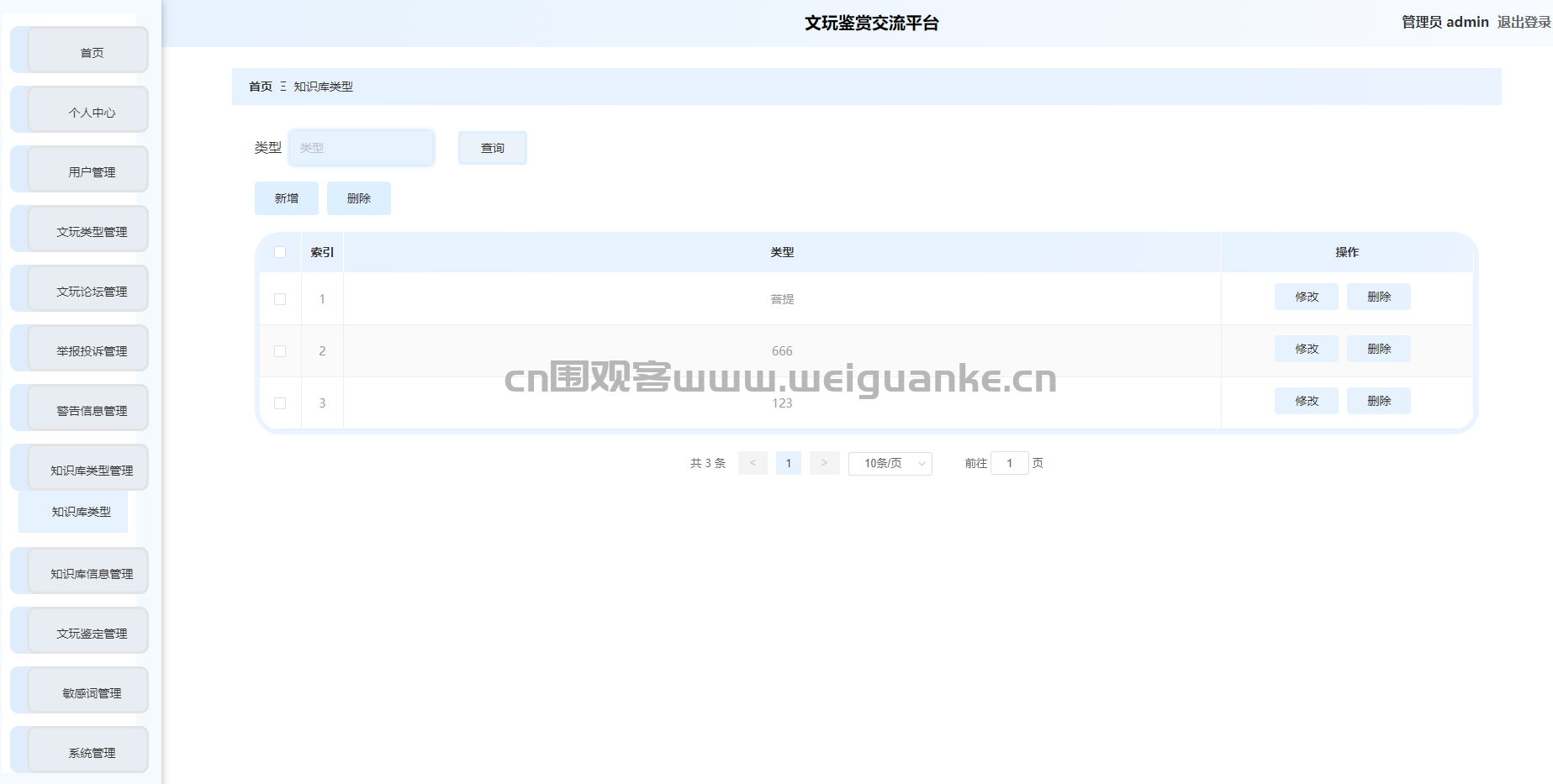 – 管理文玩(文物或相关物品)的分类,包括添加、编辑和删除分类。