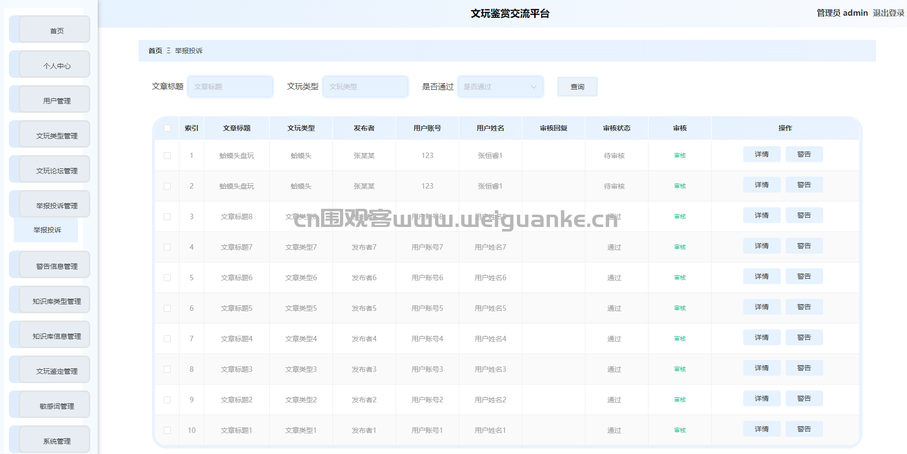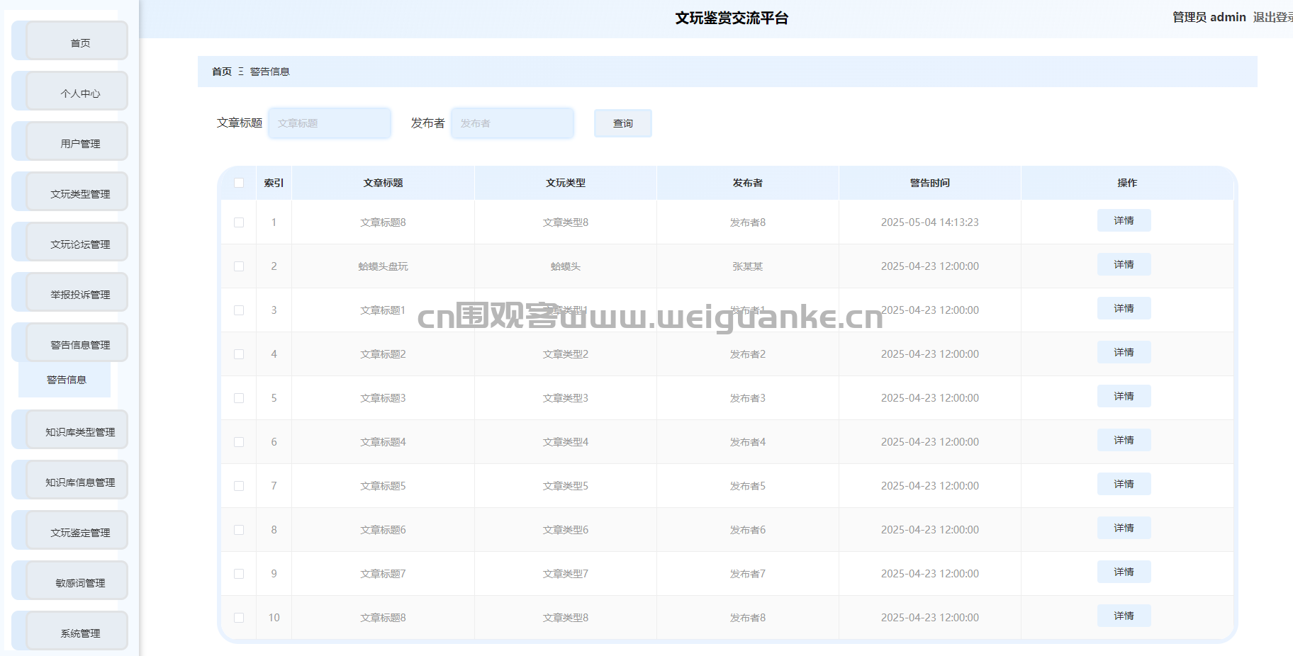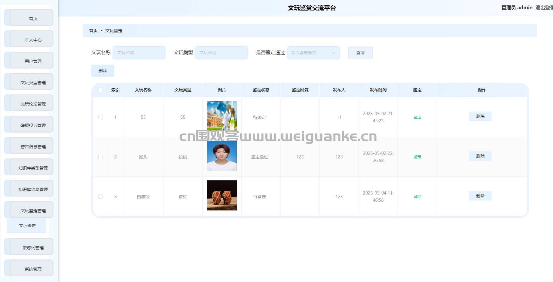 – 管理文玩的鉴定信息,包括鉴定结果和相关文档。