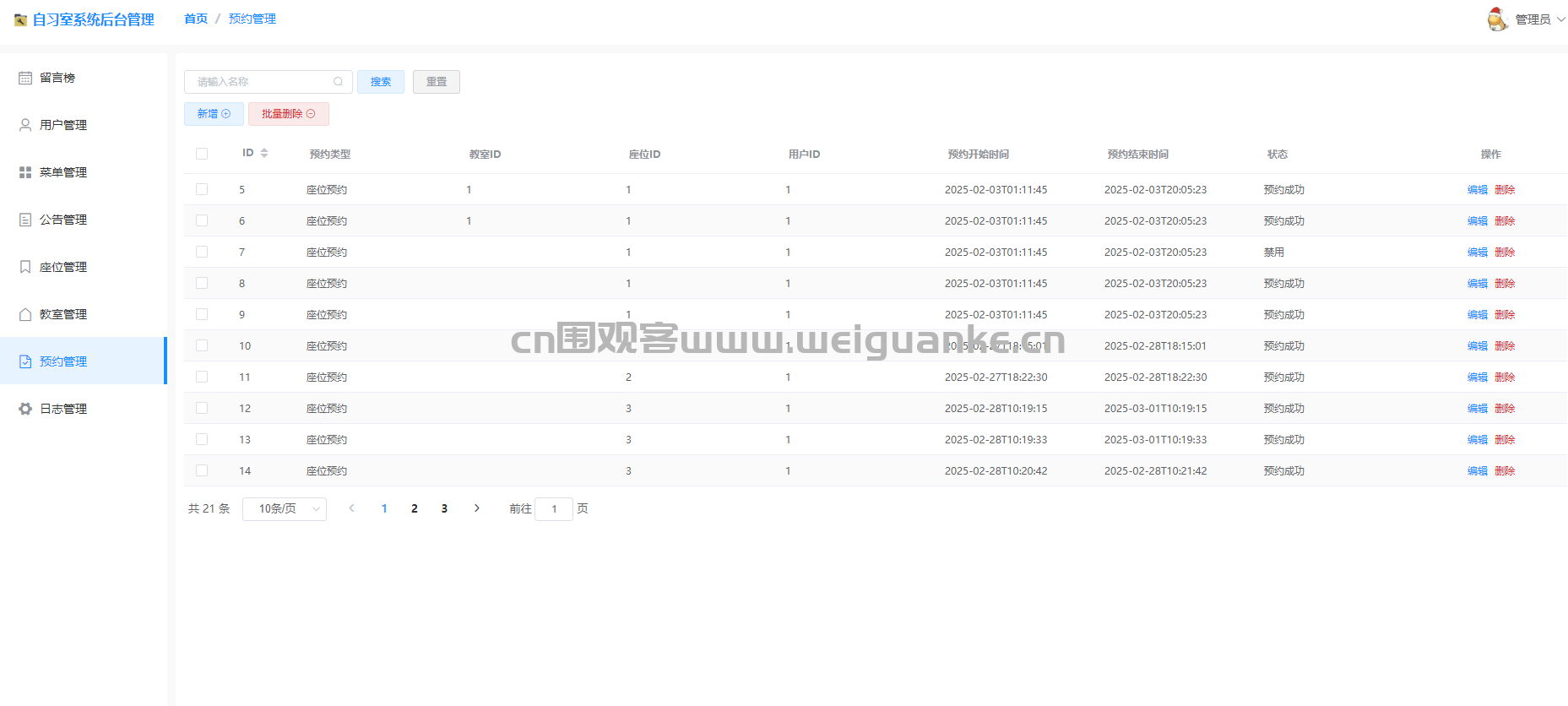 – 管理员可以管理系统中的座位信息,包括添加、编辑和删除座位。管理员还可以设置座位的状态(如空闲、已预约)和座位的属性(如是否为无障碍座位)。