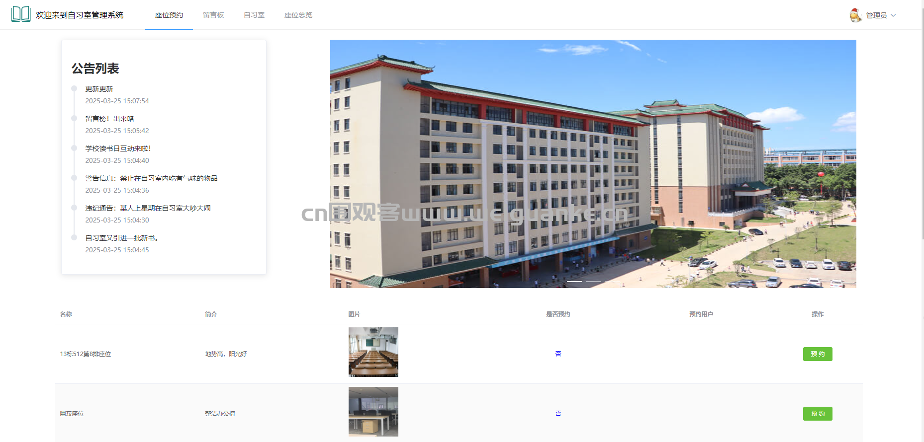 自习室管理系统springboot+vue