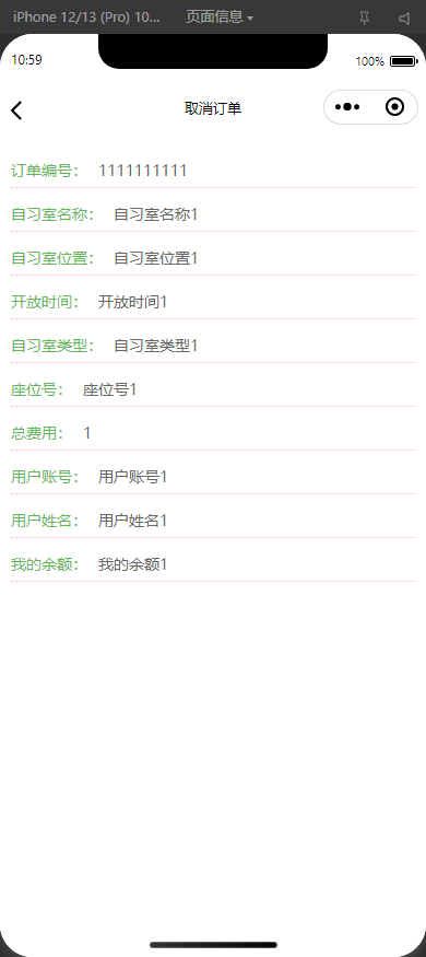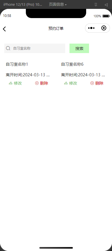 自习室信息管理-预约订单:新增预约、查询订单、取消订单。