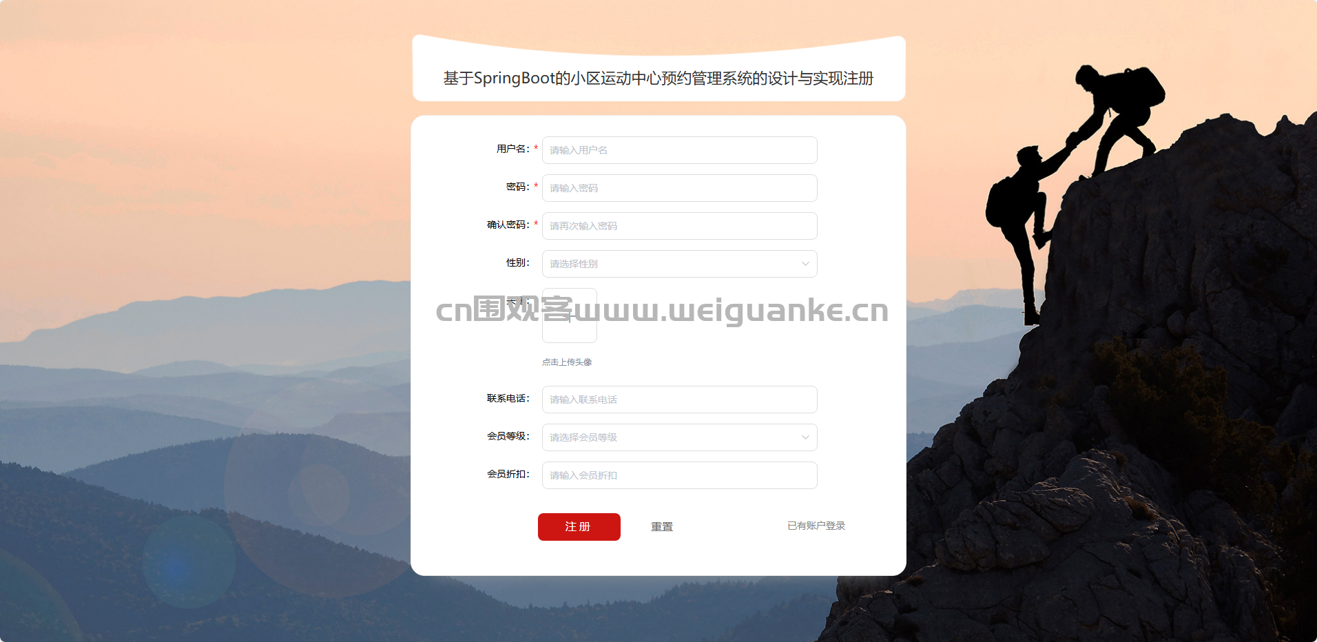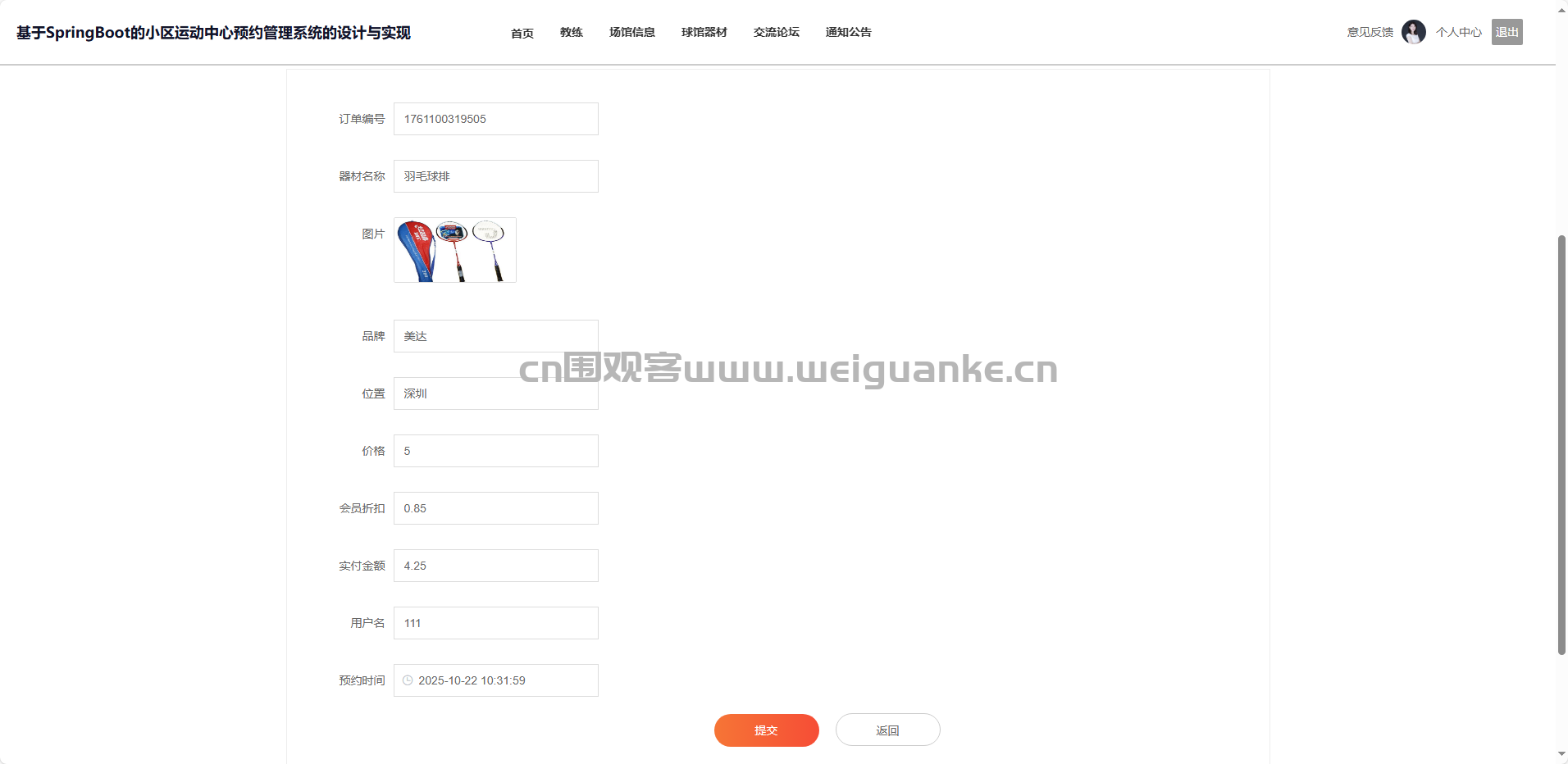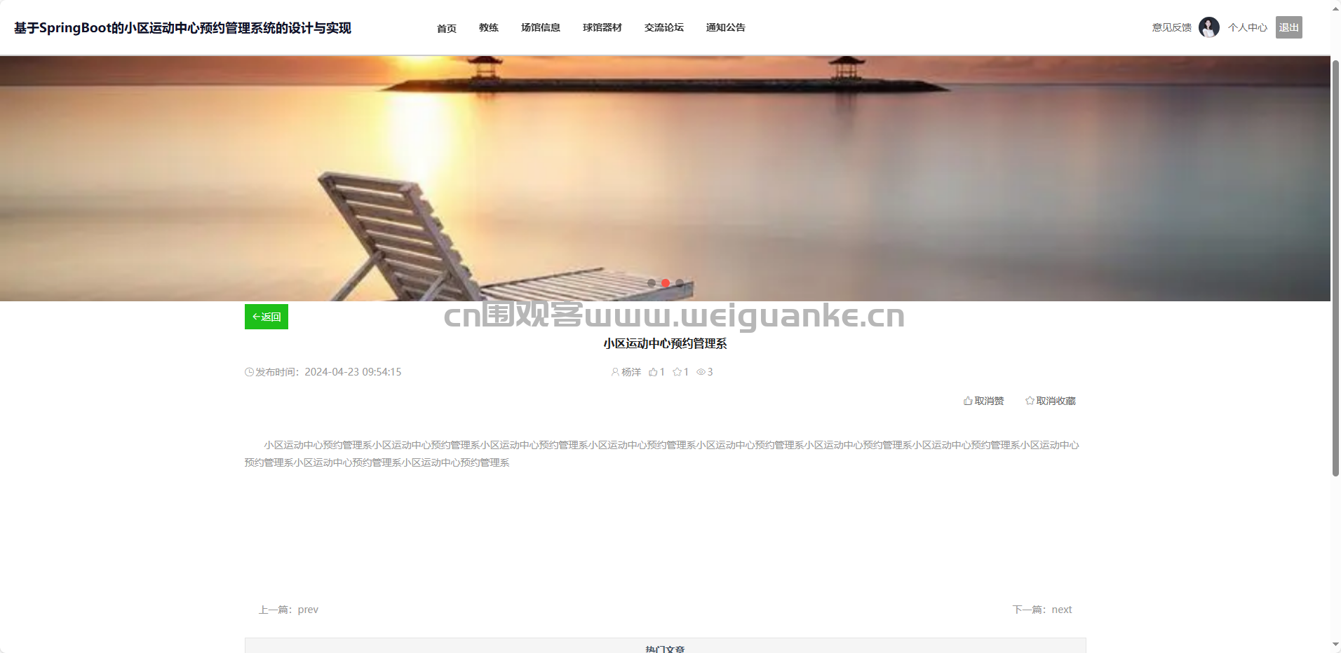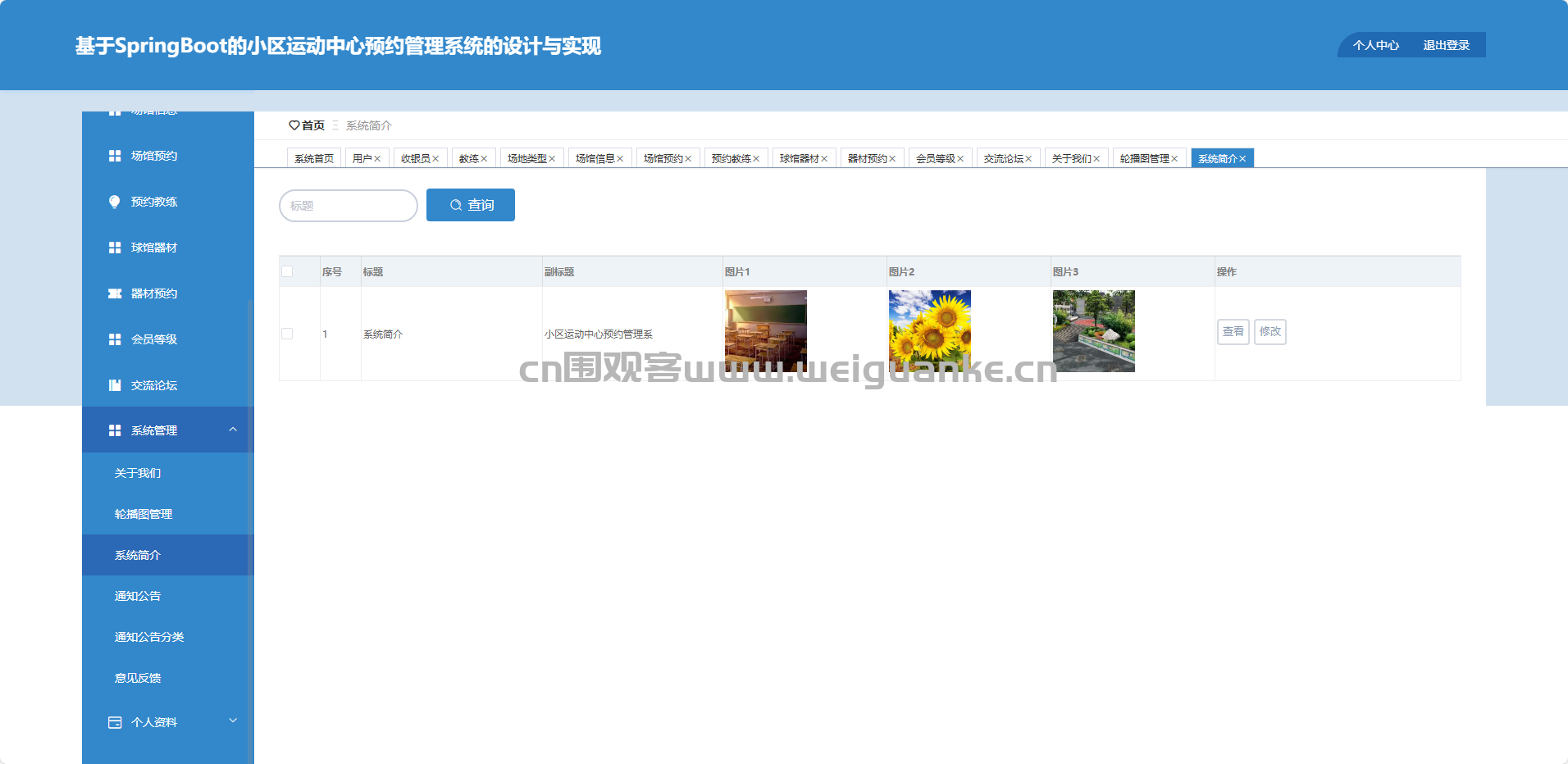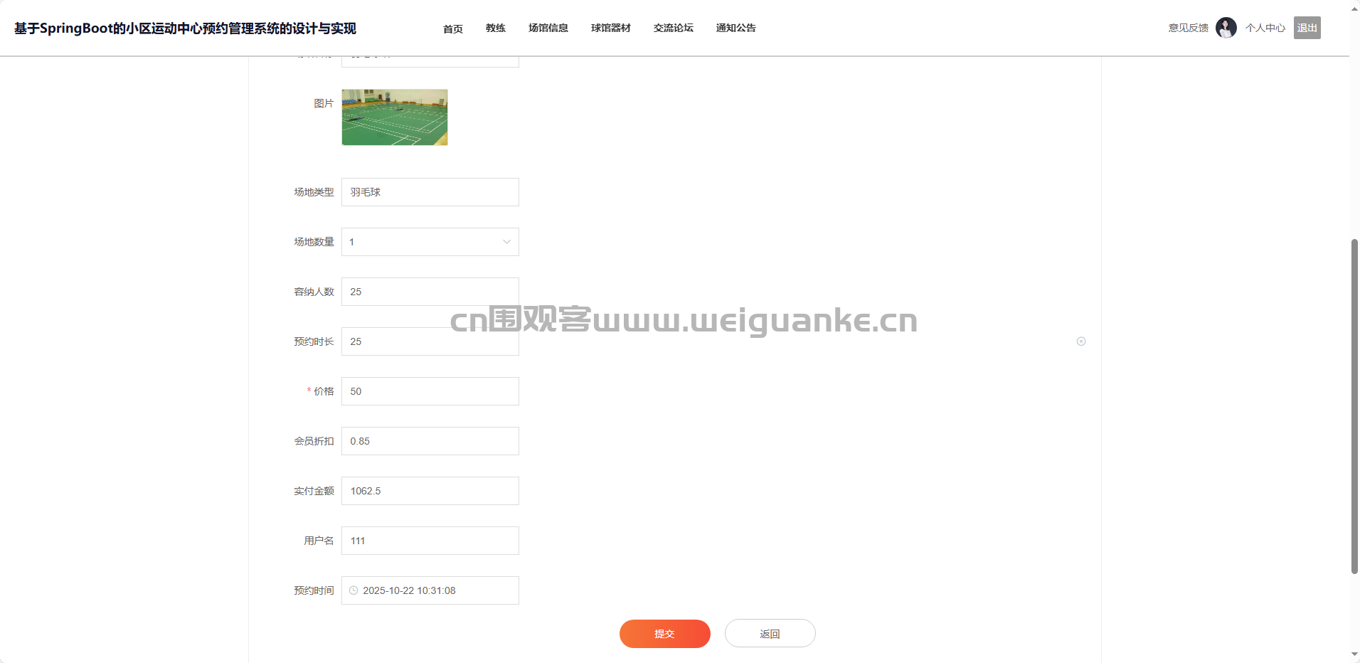 项目描述 基于springboot + vue的小区运动中心预约管理系统