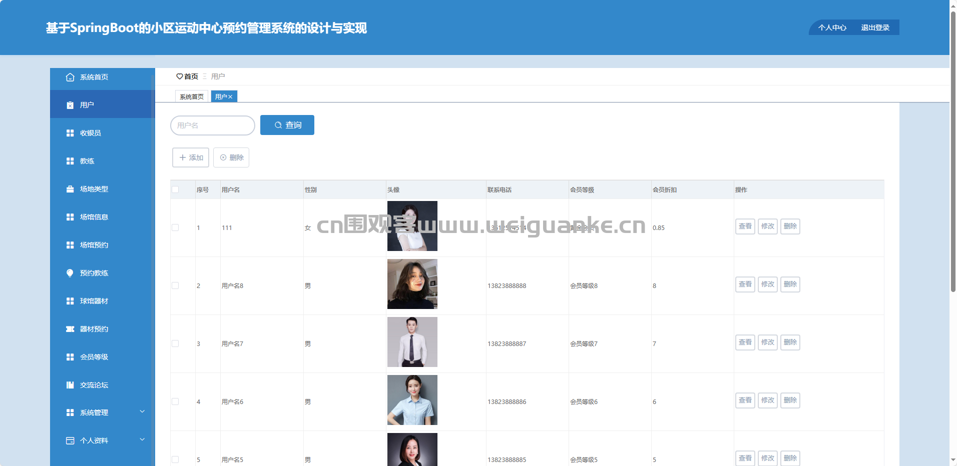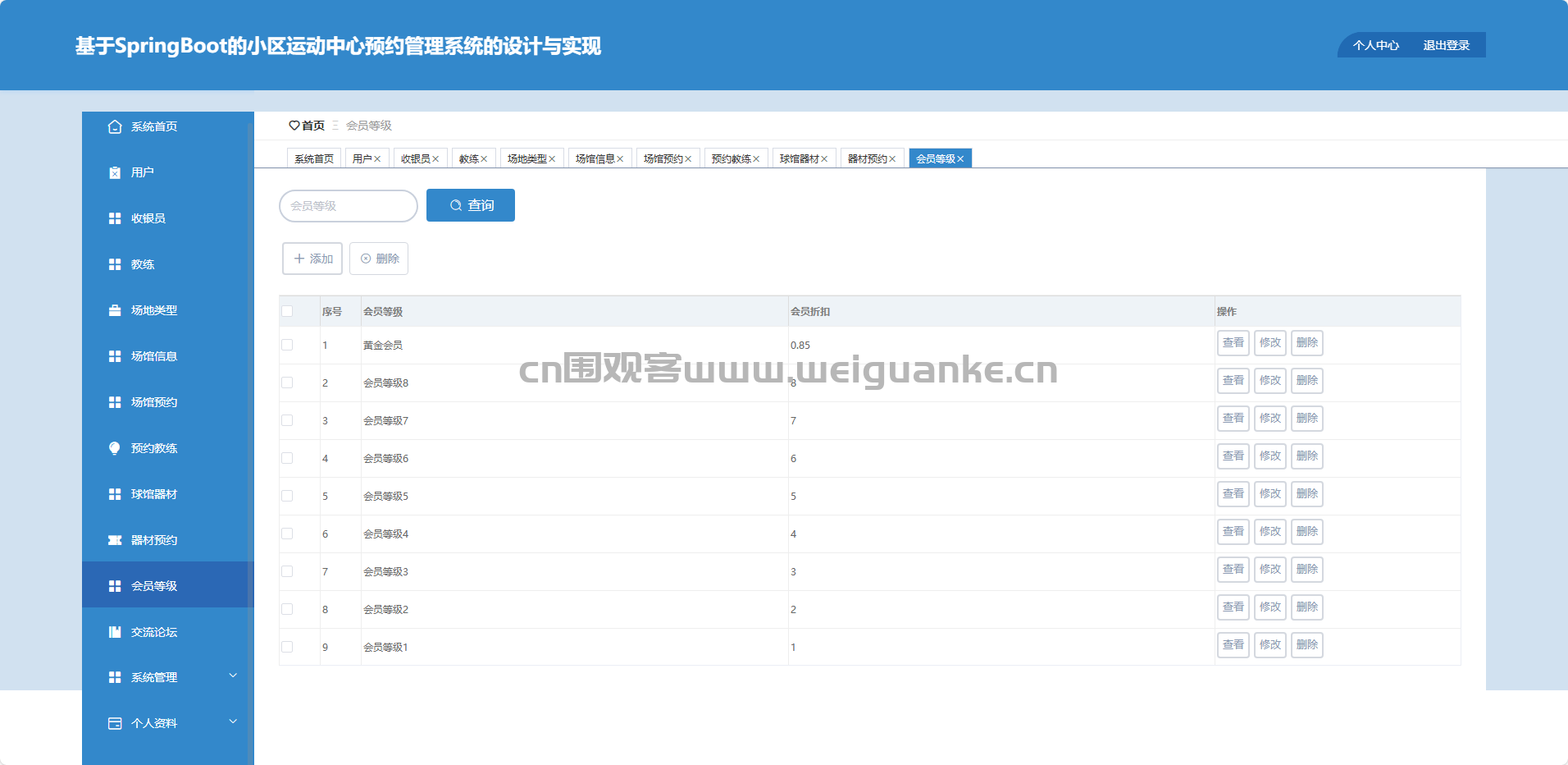 用户:新增、修改、删除、查询注册用户,设置会员等级。