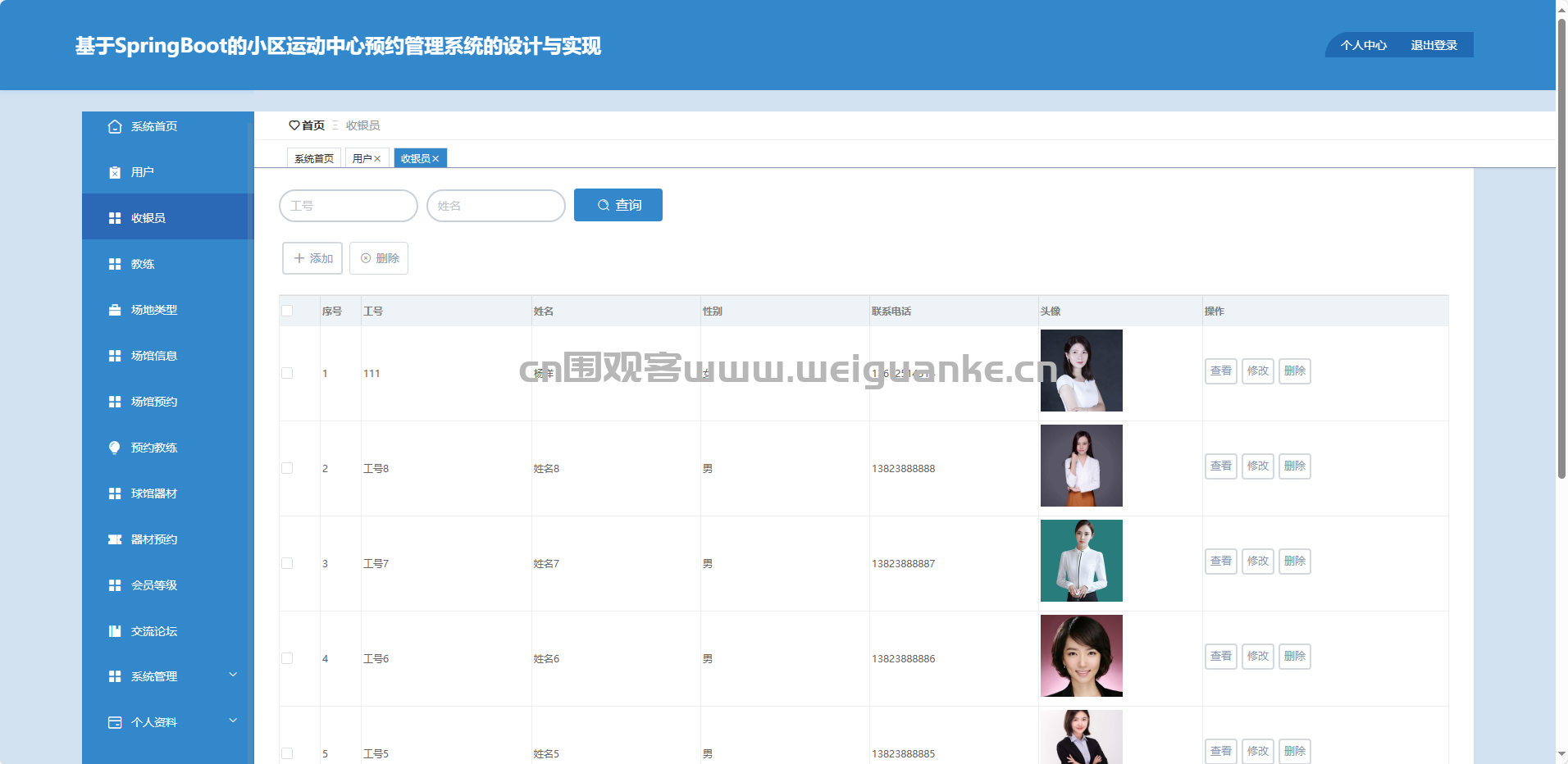 基于SpringBoot+Vue构建的小区运动中心预约管理平台,实现教练、场地、器材在线预约,会员等级差异化计费,通知公告及时发布,用户、收银员、管理员多端协同,保障运动资源有序使用。