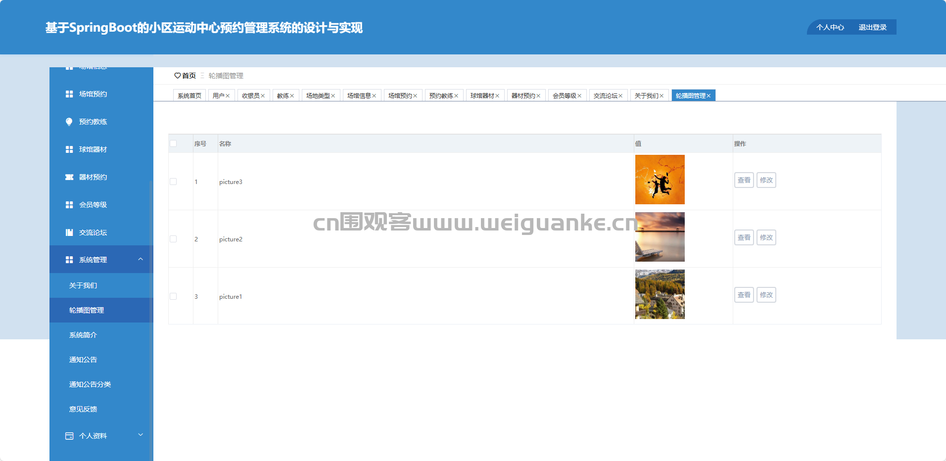 系统管理-轮播图管理:新增、修改、删除、查看首页轮播。