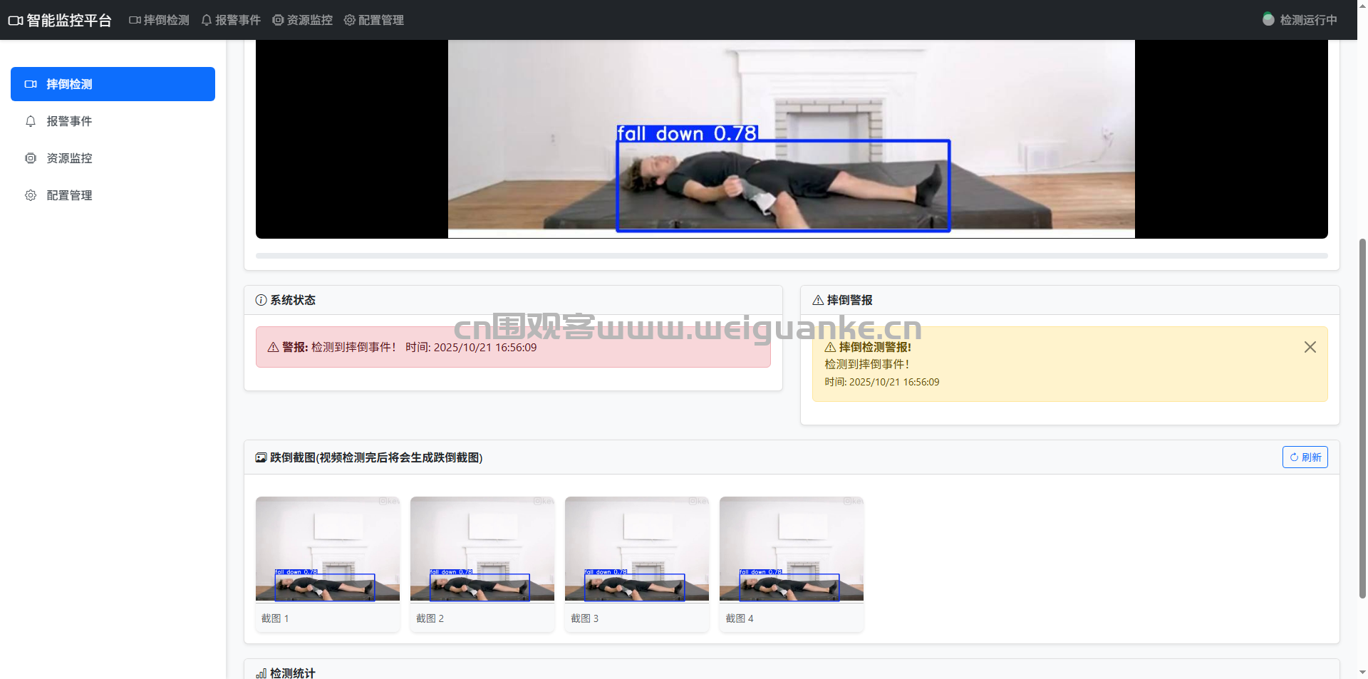 基于 flask+ bootstrap +echarts + mysql8.0 架构智能摔倒检测报警系统