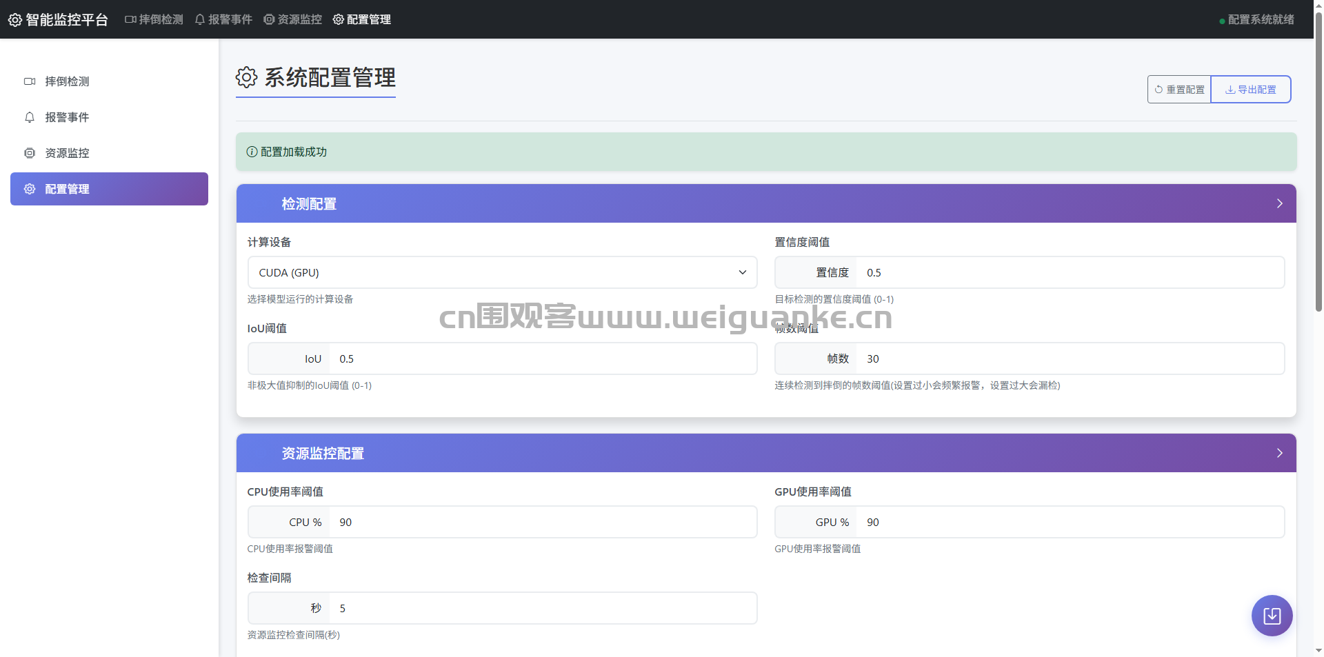 配置管理:AI模型配置人员信息配置报警配置资源监控配置检测配置的信息