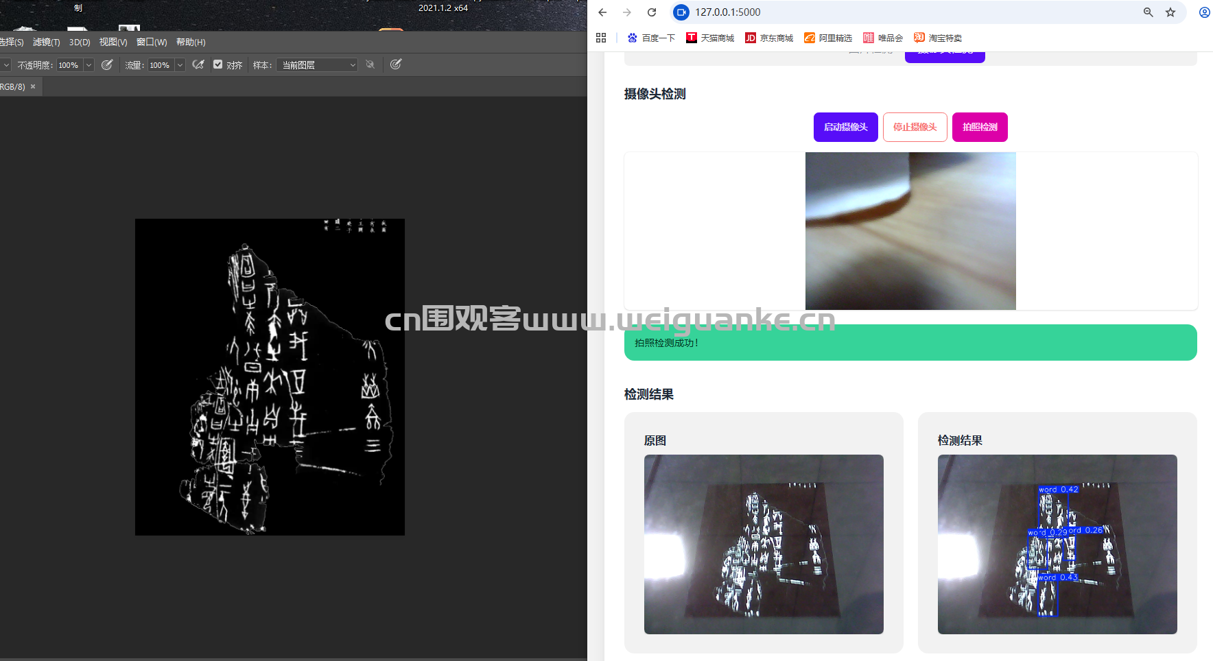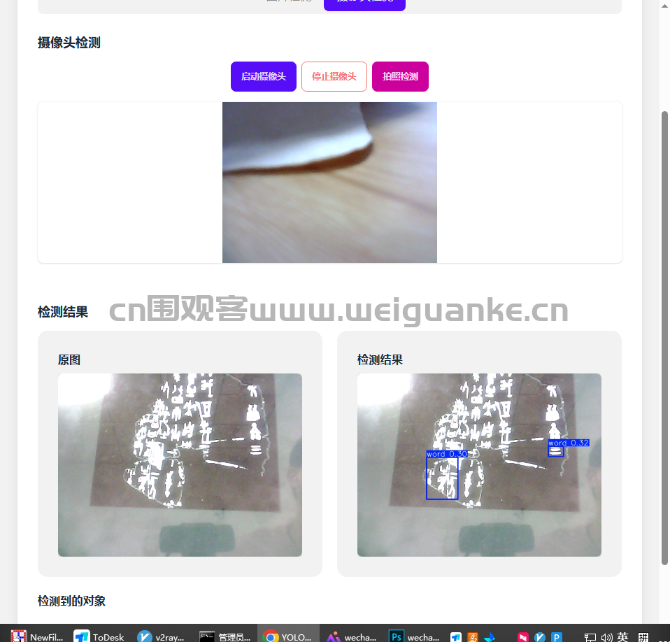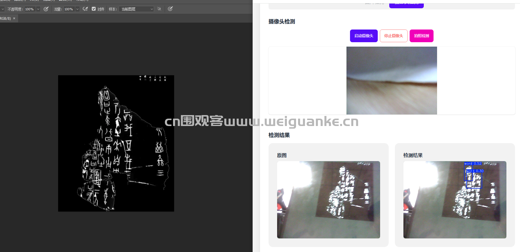 摄像头检测 :摄像头实时监测甲骨文的拓片文字