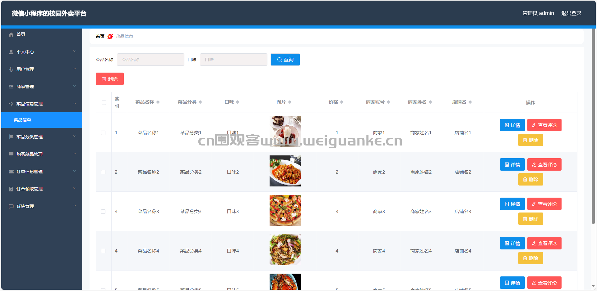 4.菜品管理:查看、编辑、删除菜品信息和评论信息